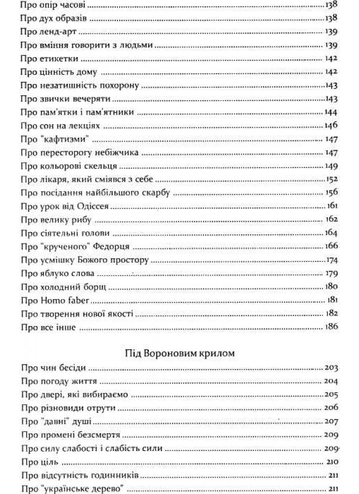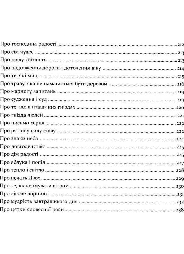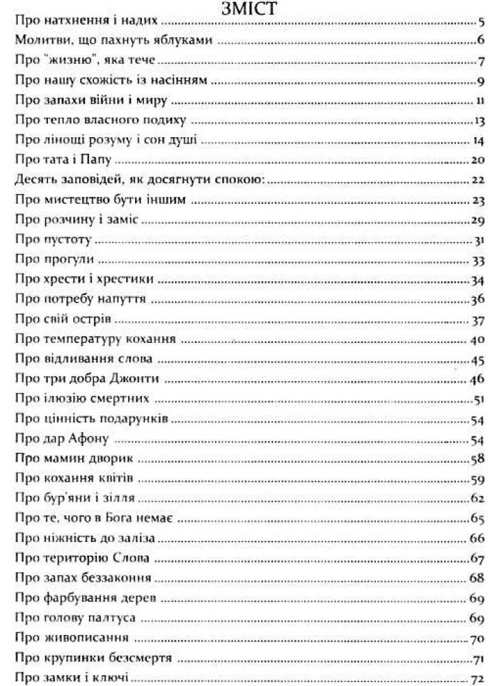 Ця книжка - про життя як безнастанний дар; про духовні вершини Афону і маленькі карпатські верховини; про те, що робить істоту вільною і безсмертною; про вічні істини і про вічний пошук щоденних крихт радості; про особисте і вселюдське; про земне і небесне, що дарує надих. А ще в цій книжці нуртує розкіш мови - чар текстів, переплетених із таїнством змісту. Невтомне і невтоленне збирання зілля Слова.