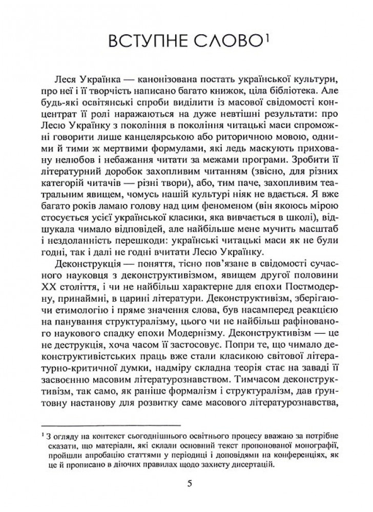 У монографії йдеться про необхідність критичного переосмислення численних стереотипів у сприйнятті творчості Лесі України. Застосування ефективних сучасних методів (деконструкція, психоаналіз, формалізм, інші) дозволяє побачити тексти класика української літератури без упереджень, властивих науковцям багатьох поколінь.