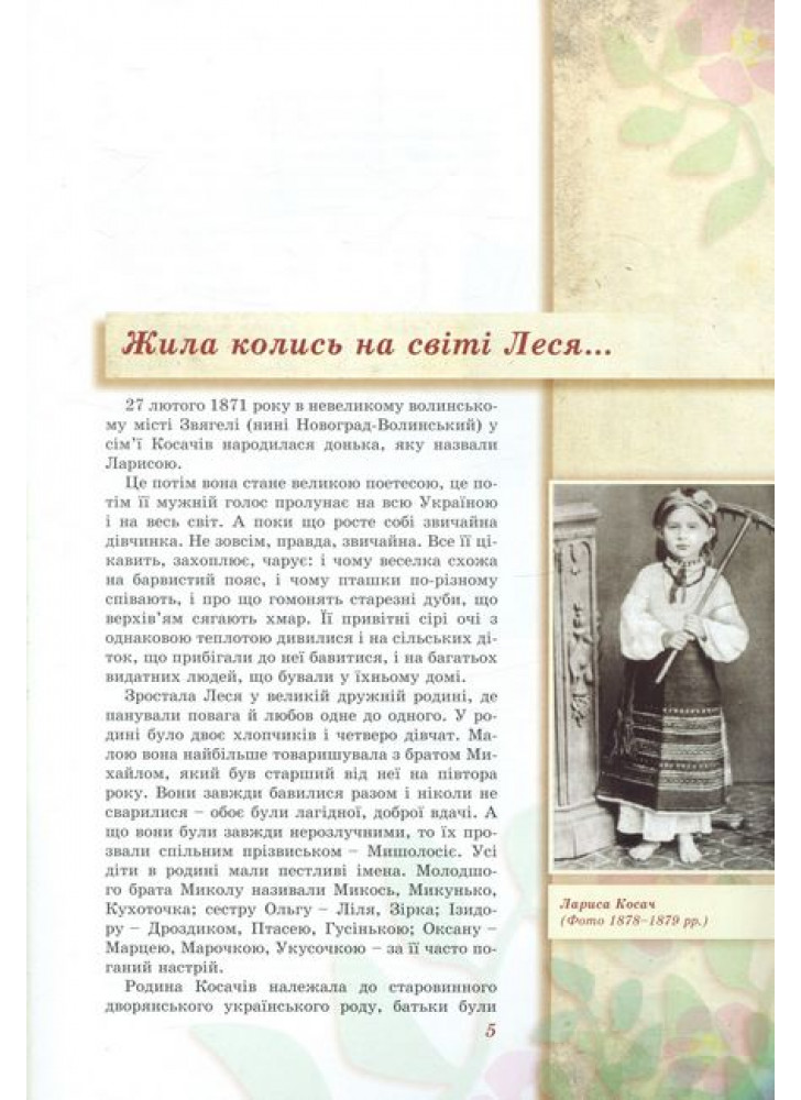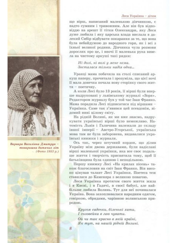 Книга вводить читача в чарівний аоетичний світ Лесі Українки. До збірки увійшли вірші та казки для дітей, а також уривки з поем, драматичних творів, доступні для сприймання дітьми молодшого та середнього шкільного віку. Книга адресована дітям, батькам, вчителям та усім, хто шанує творчість великої поетеси.
