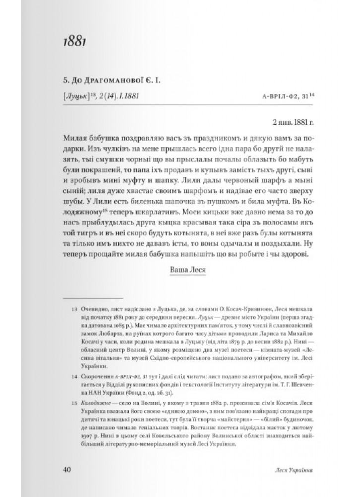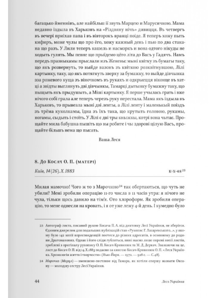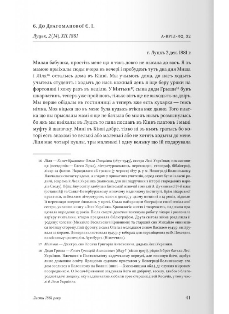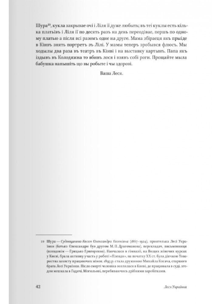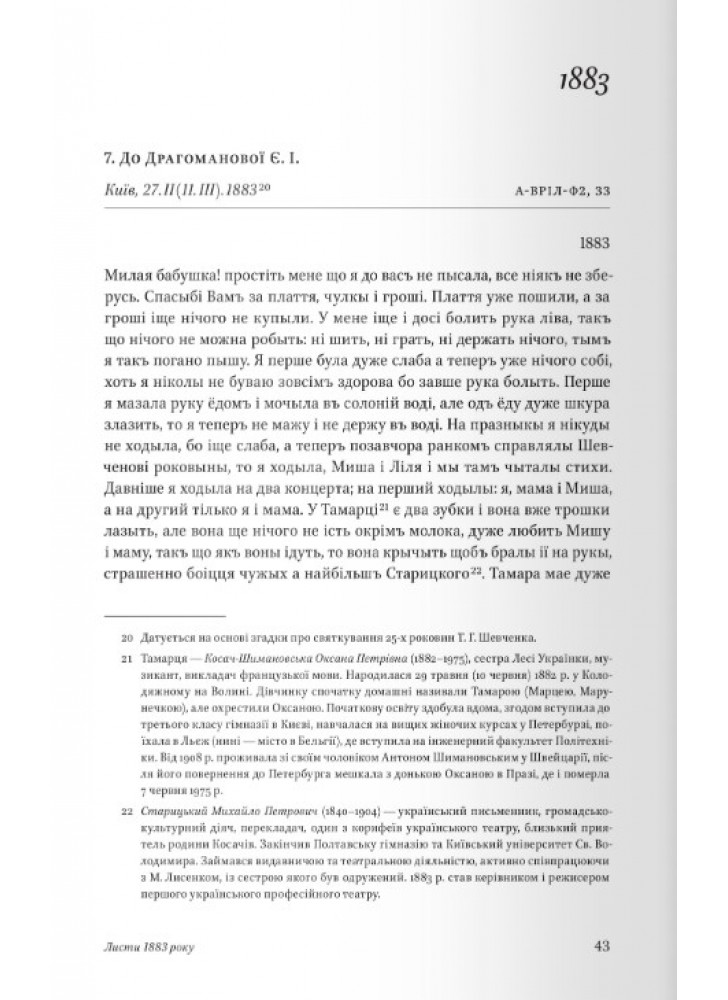 Уперше опублікований без вилучень, зі збереженням авторського правопису, епістолярій Лесі Українки відкриває читачам можливість по-новому побачити одну з найяскравіших постатей української культури межі XIX-XX століть.