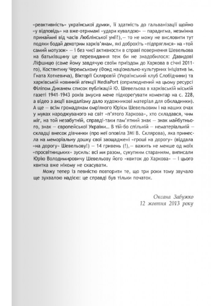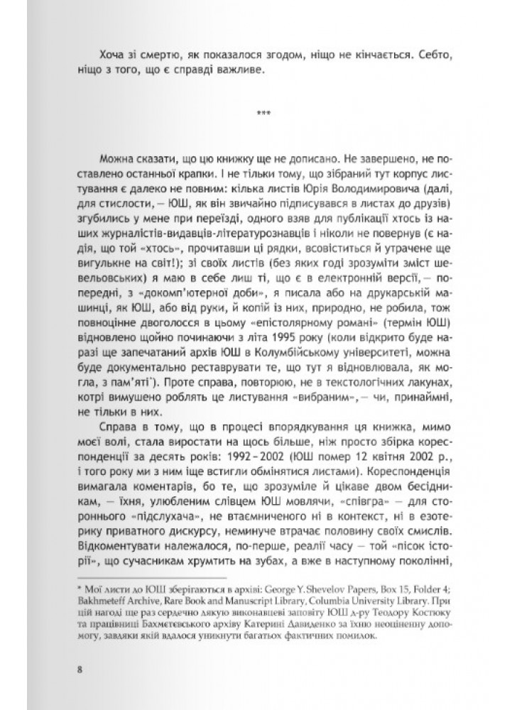 Спілкується з письменниками, артистами і політиками, багато подорожує — часто вимушено, а проте радо, вчить італійську, намагається здобути фінансову незалежність, бере на себе роль родинного миротворця, нарікає на виснажливість закупів за кордоном і грубість російських туристів, шиє собі одяг і виписує книжки з європейських бібліотек… Яскрава картина fin de siècle, якою її побачила блискуча інтелектуалка з української аристократичної родини, ненароком написаний геніальний роман у листах.