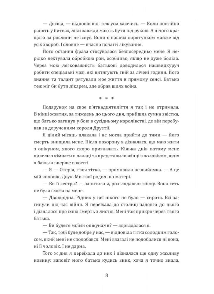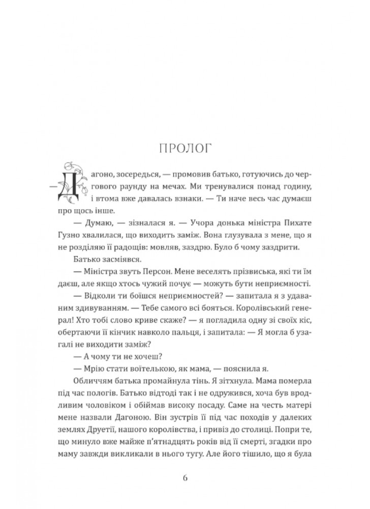 З дитинства закохана у трави, Дагона тішиться дізнатись, що може розвивати свої зміїні дари в саду отруйних рослин і майстерні еліксирів. Ще вона знову бере у руки меч і тренується майже щодня із сильним досвідченим воїном. І робить це не лише тому, що дуже полюбляє — на неї чекають чотири випробування у “головного зла королівства”, Моракса, які є частиною угоди, укладеної з тим, для кого вигода — понад усе.