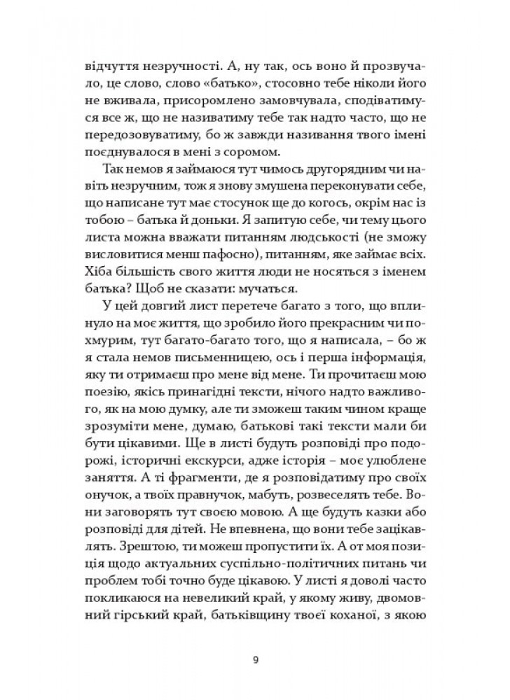 Героїня есеїстичного роману «Лист в Україну», в якій упізнаємо риси й деталі біографії авторки, інтенсивно цікавиться Україною, маючи для цього особисті мотиви (її біологічним батьком був військовополонений офіцер родом з Києва), а водночас вбачаючи чимало паралелей між Україною та своєю батьківщиною – Південним Тиролем, автономною північно-італійською провінцією, понад 60 % населення якої вважає своєю рідною мовою німецьку.