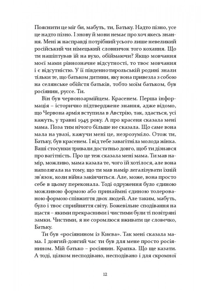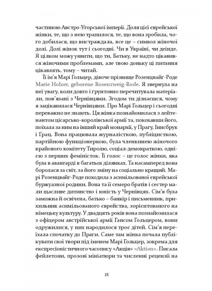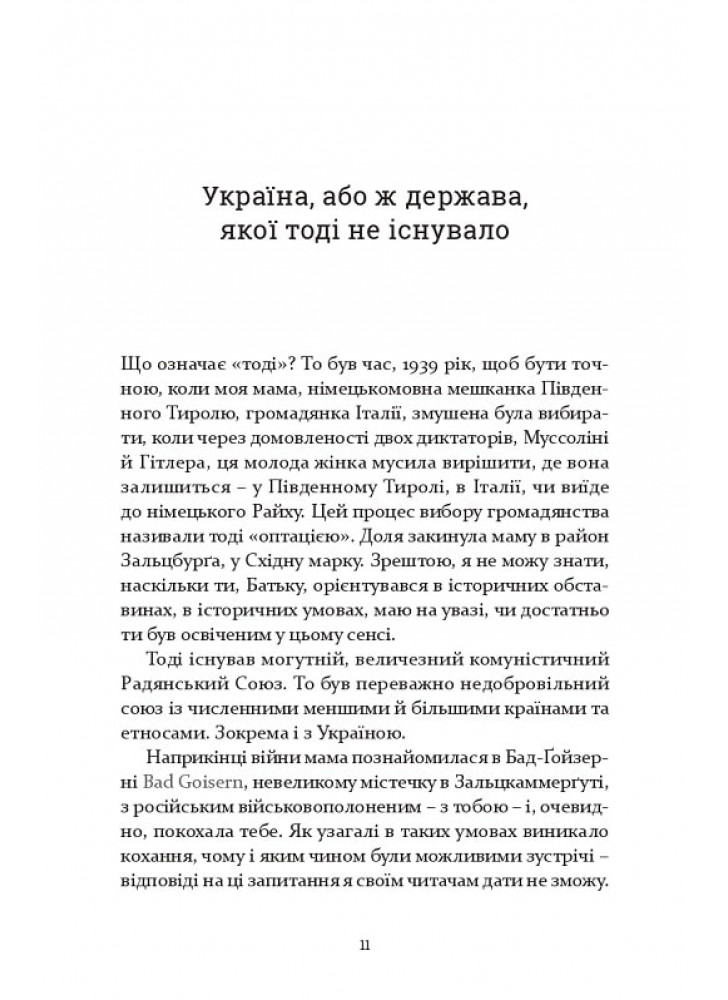 Відстежуючи асоціативні, нерідко полемічні повороти оповіді авторки, читачі зможуть збагатитися низкою типових для європейської історії сюжетів – від Середньовіччя з його видатним монархом Максиміліаном І до сучасних подій у змаганні південнотирольських діячів культури за збереження самобутньої культури регіону.