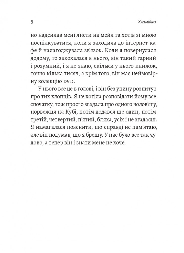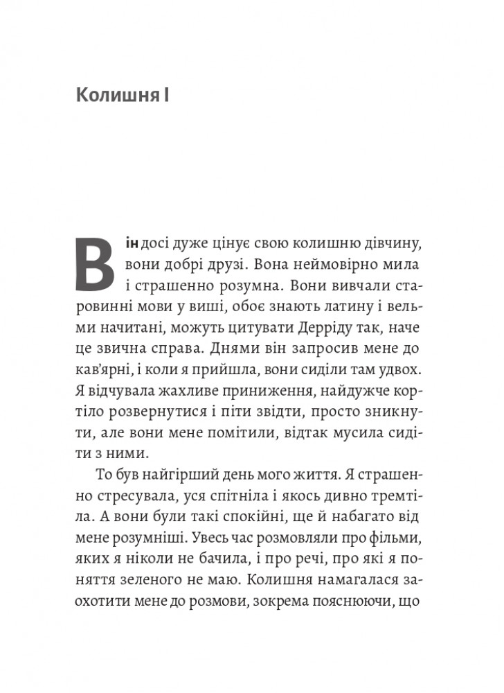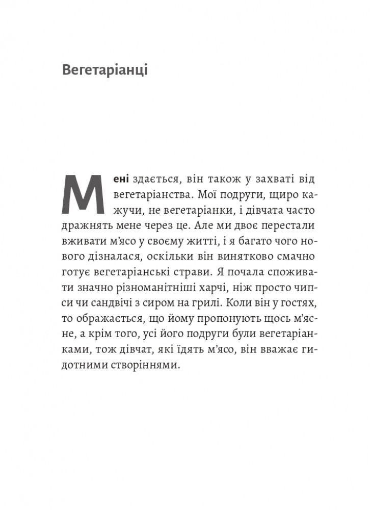 Лілью тепер не впізнати. Дівчина, яка колись сама подорожувала Центральною Америкою, стала залежною від стосунків. Він красивий і начитаний, ідеально готує збалансовані вегетаріанські страви та читає латиною. У нього тільки один недолік – він аб’юзер. Лілья не помічає його маніпуляцій, підкоряється сексуальним вимогам і сідає на сувору вегетаріанську дієту, знищуючи саму себе.
