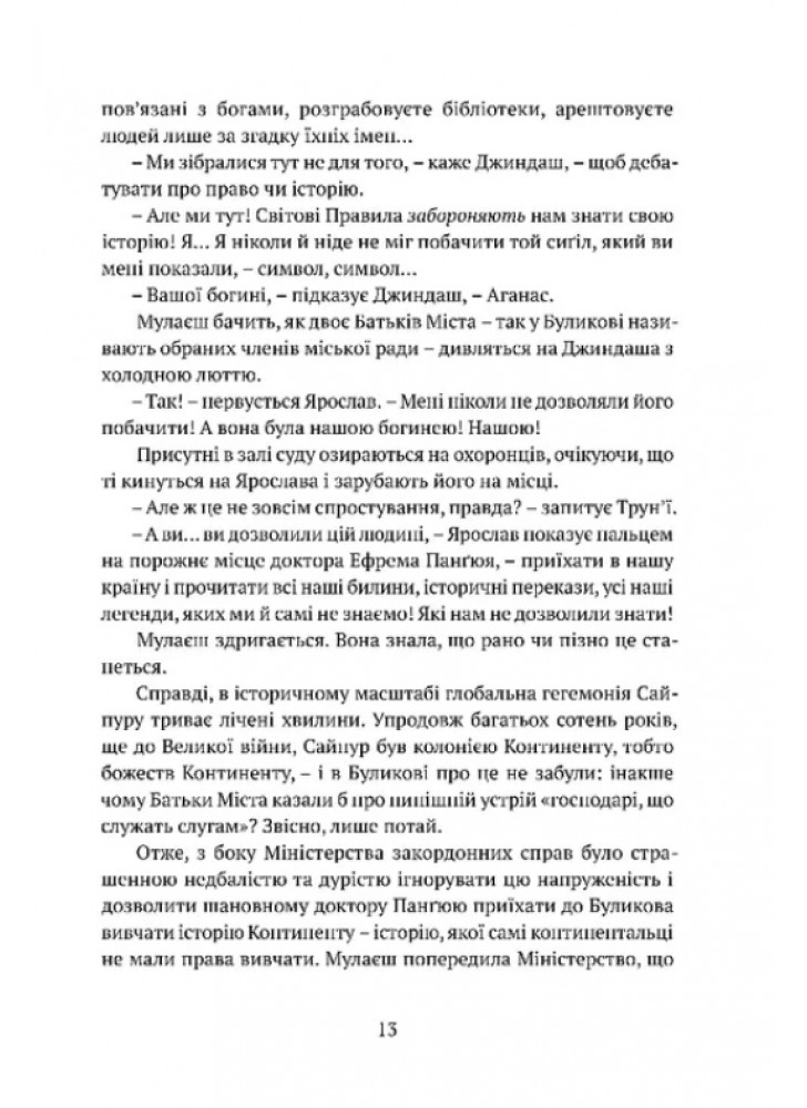 Однак, розшукуючи вбивцю, Шара починає підозрювати, що боги, можливо, досі живі і що жорстоке правління Буликова поки не закінчилося... Атмосферне та захопливе фентезі про мертвих богів, поховані історії й таємниче місто від одного з найвідоміших письменників Америки.