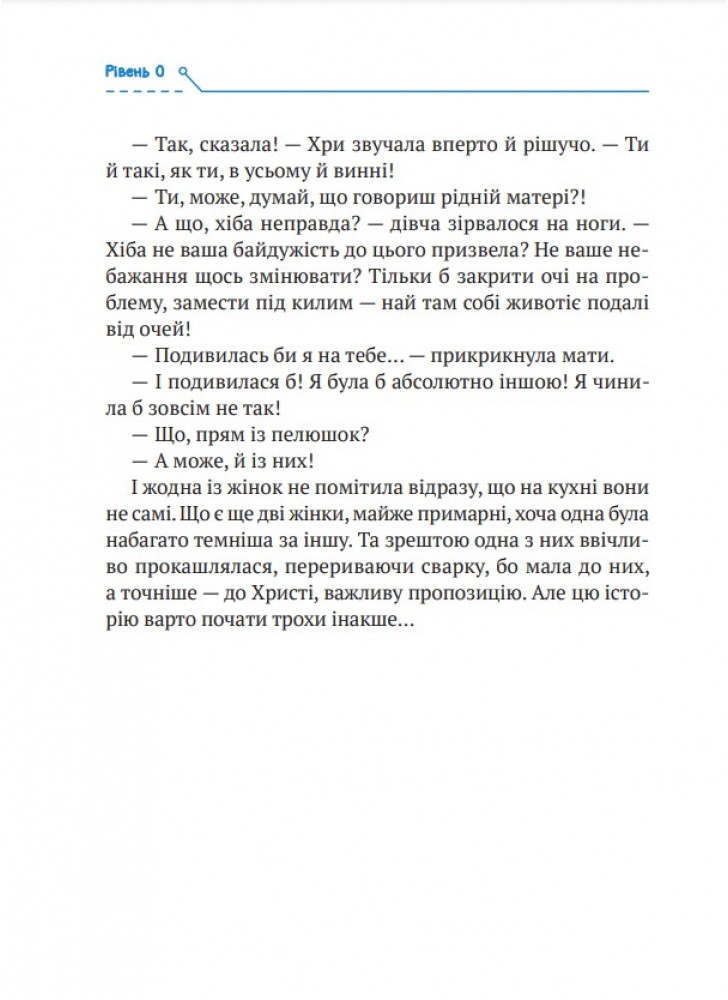 Уявляєте історію, у якій понад десять сюжетних ліній і близько двадцяти фіналів, що залежать тільки від вас? Книжка-квест про життя Ані та її шістнадцятирічної доньки Христі запрошує до гри: вам вирішувати, як саме складеться доля героїнь і майбутнє України. Наприкінці кожного розділу саме ви обиратимете, як рухатимуться сюжет та історія далі. Час розпочинати гру: розгорніть книжку та зробіть свій перший вибір!