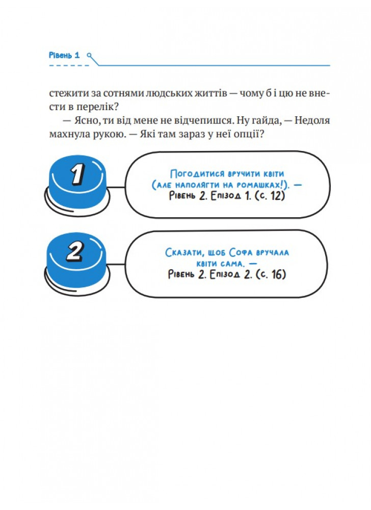 - Ця книжка-квест пропонує юним читачам шанс «погратися» із сюжетними лініями та подивитися на варіанти розвитку України з різними «якби» — у романі можливі близько 20 фіналів! І хоч історія, як відомо, не терпить умовного способу, але такі фантазійні забавки з текстом дуже до душі підліткам (та й дорослим теж;).