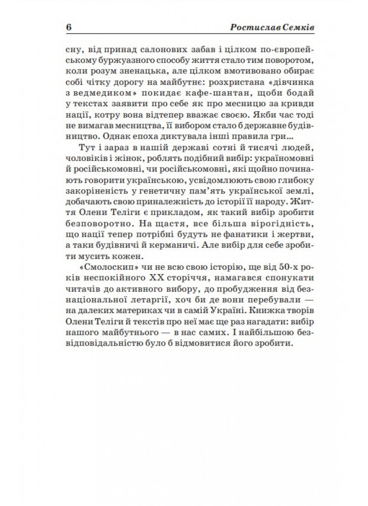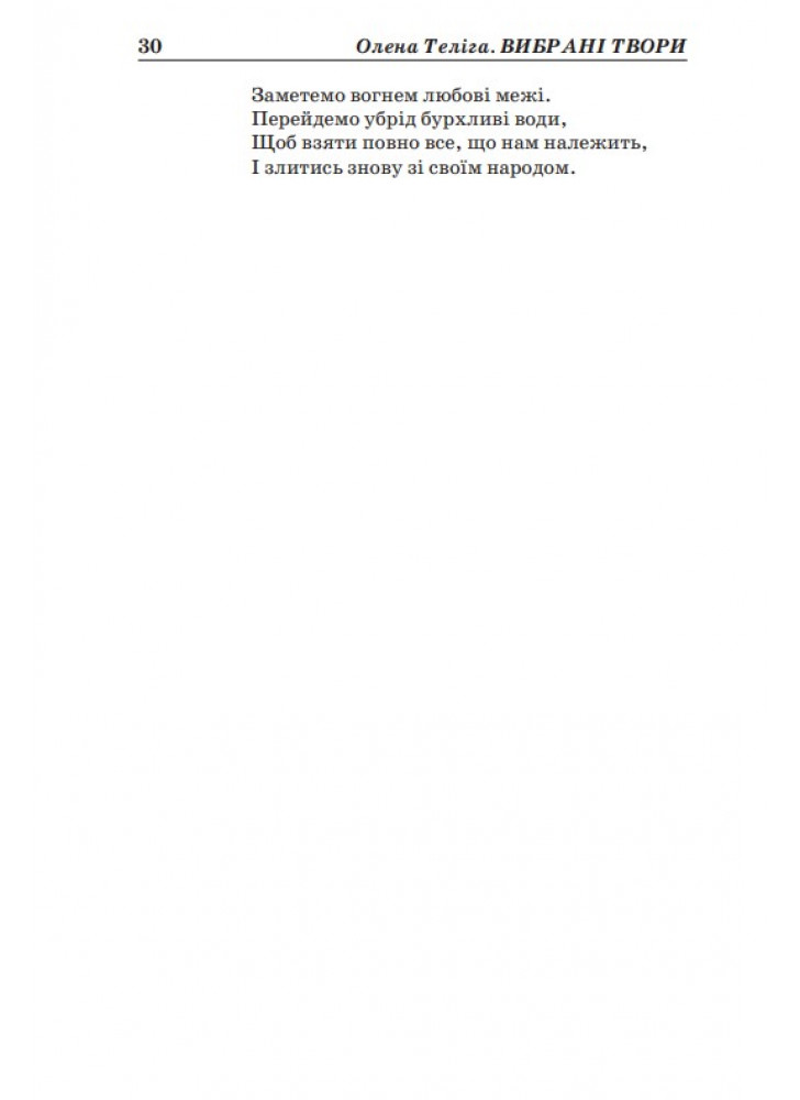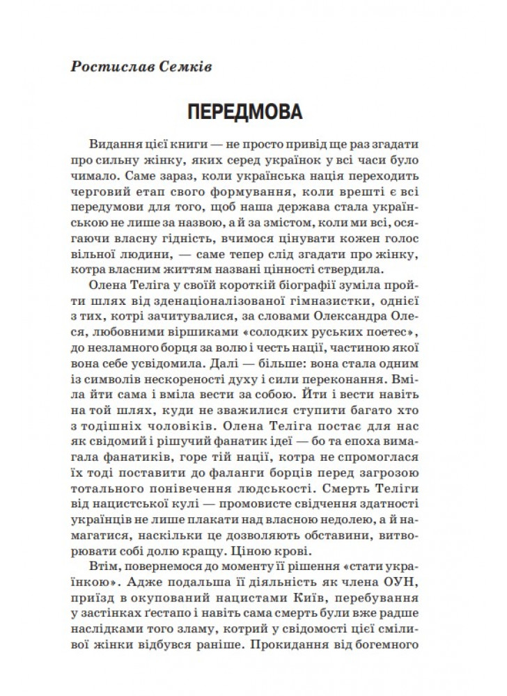 Видавництво «Смолоскип» презентує видання вибраних творів Олени Теліги — політичної діячки і поетеси, розстріляної фашистами в 1942 році в Бабиному Яру. До збірки увійшли всі її відомі поетичні, центральні публіцистичні твори та добірка листів.