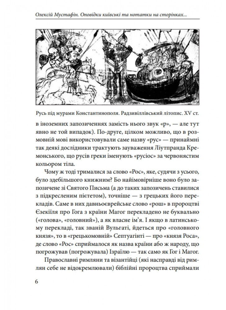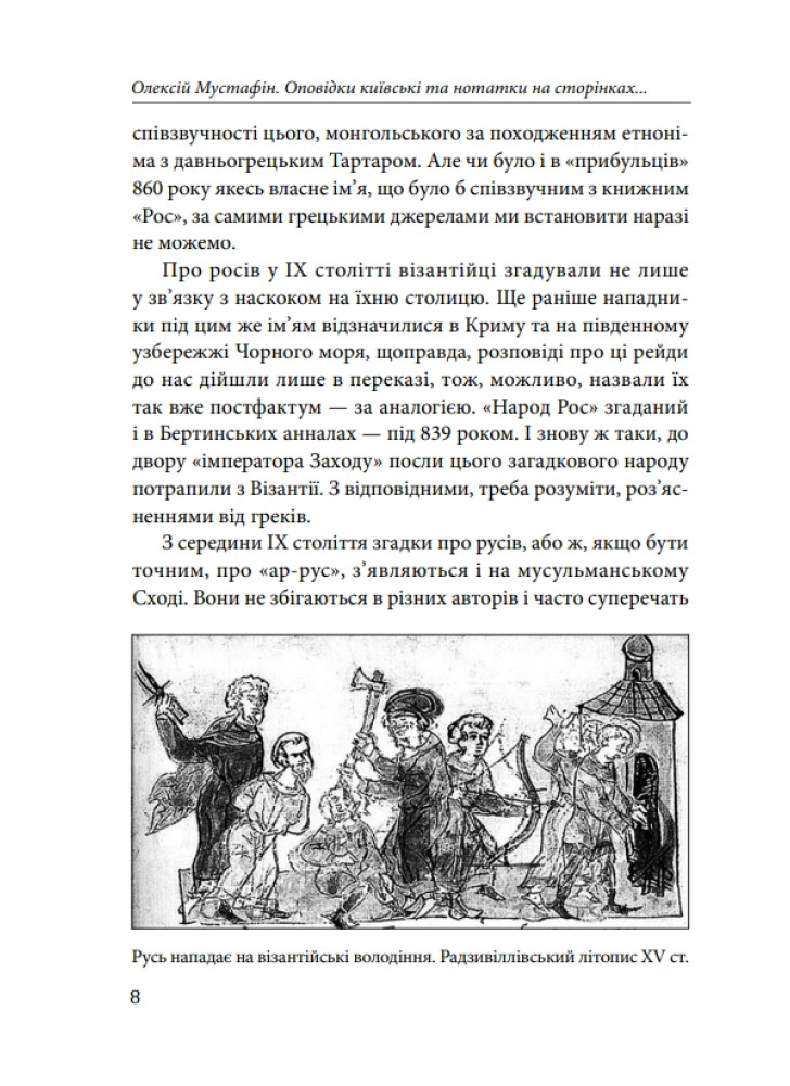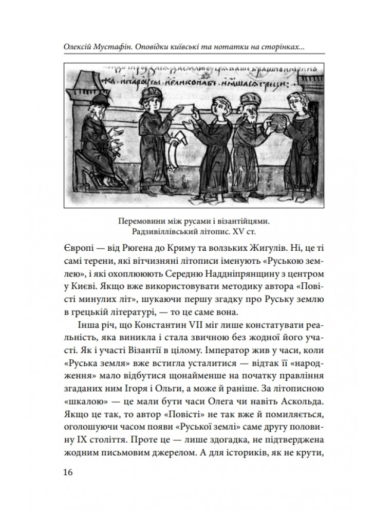 «Оповідки київські» Олексія Мустафіна — це спроба ще раз поглянути на минуле нашої країни... з київських пагорбів. Адже усі події вітчизняної історії немов у дзеркалі відбиваються у долі нашої столиці — «стольного граду» Руcі, духовного центру Гетьманщини, серця модерної України, яке імперія марно сподівалася зробити «своїм»...