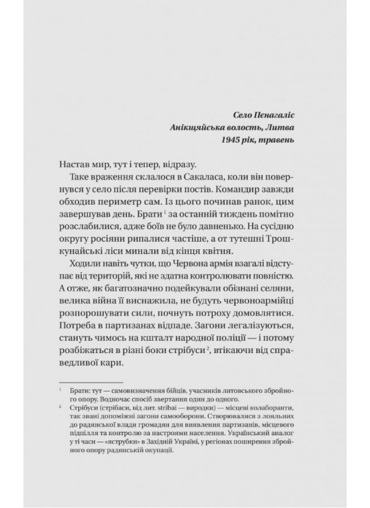 «Лісові брати» — так називають себе партизани, які стають регулярною армією підпільної литовської держави. Герої роману, Сакалас, Лютас, Тарзанас, Ажуолас, Шарунас і українець Іван Мартинюк, названий Йонасом, являють читачам колективний портрет повстанців, що кинули виклик р*сійській окупаційній владі. Вони раз по раз доводять: всесильна р*дянська держбезпека на чужій землі може виявитися безсилою…