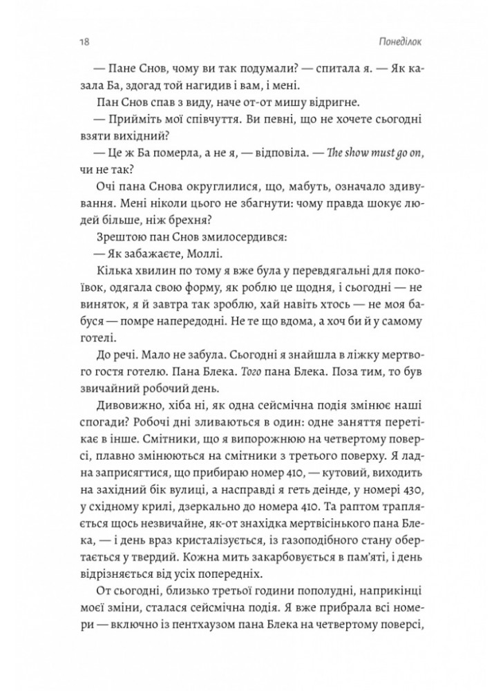 Моллі Грей не така, як всі — вона не розуміє людей навколо і не вписується у соціальні стандарти. Кілька місяців тому померла її улюблена бабуся, тож розраду вона знайшла у роботі покоївки. Їй подобається досконало прибирати кімнати готелю і зникати до приходу гостей.