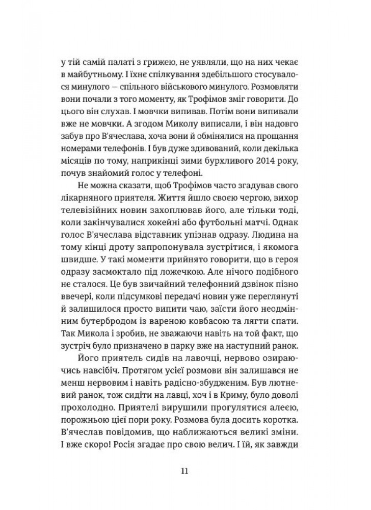 Серед викрадачів — бандити з 90-х, р*сійські військові, місцеві зрадники, а також відставник р*сійської армії, кримчанин Трофімов, який радісно вітав «російську весну», але розчарувався в ідеї після фатального відрядження на Донбас... Чи впорається зі своєю місією герой?.