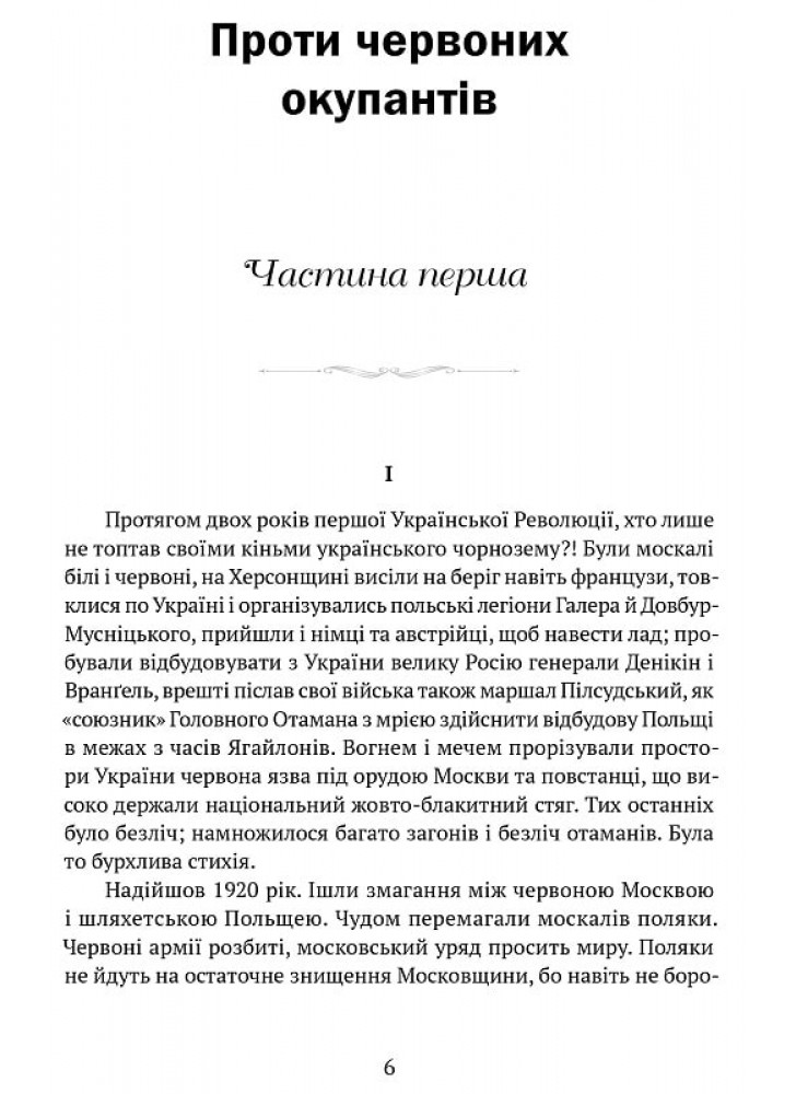 Книга Якова Гальчевського «Проти червоних окупантів» – це спогади учасника Визвольних змагань, який до 1925 року активно боровся з м*сковськими окупантами на Поділлі. Автор не раз дивився в обличчя смерті, особисто ведучи в атаки своїх козаків, виходив переможцем із безнадійних, здавалося б, ситуацій, засвідчуючи, що патріотизм та відвага здатні подолати будь-які перешкоди, що воїн, який вірить у свою справу, завжди переможе своїх ворогів.