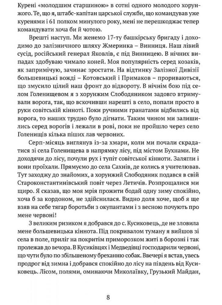 Ці спогади дають змогу краще зрозуміти причини та наслідки подій, які відбулися в трагічний період для українського народу і сприяють формуванню національного ідеалу – безстрашного воїна, який волю, славу і велич своєї Держави і свого Народу ставить понад власні інтереси і понад власне життя. Ця книга є унікальним джерелом інформації для тих, хто цікавиться історією України та шукає правдиве висвітлення подій.