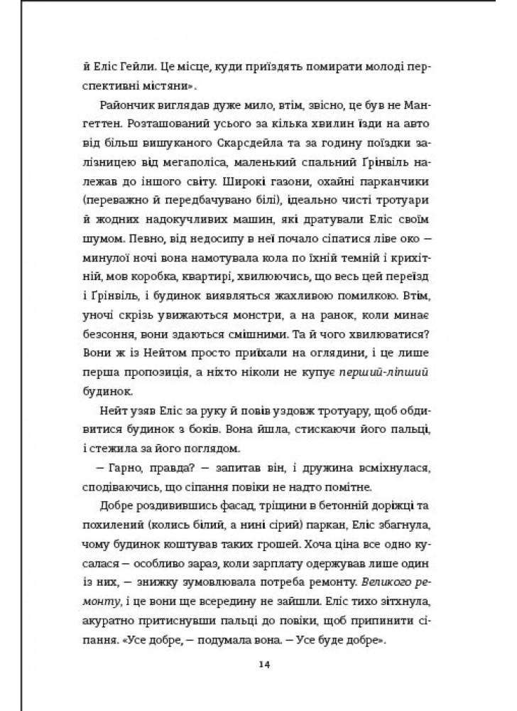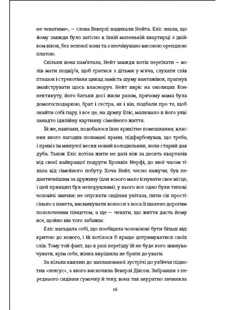 Еліс Хейл, головна героїня роману, залишає кар’єру в піарі, щоб стати письменницею. Але це не єдині зміни у її житті – разом із чоловіком вона переїздить з Нью-Йорка у тихе передмістя. Не все йде за планом, жінка багато часу проводить у великому порожньому будинку, їй там дуже нудно, а ще її плани не збігаються з чоловіковими.