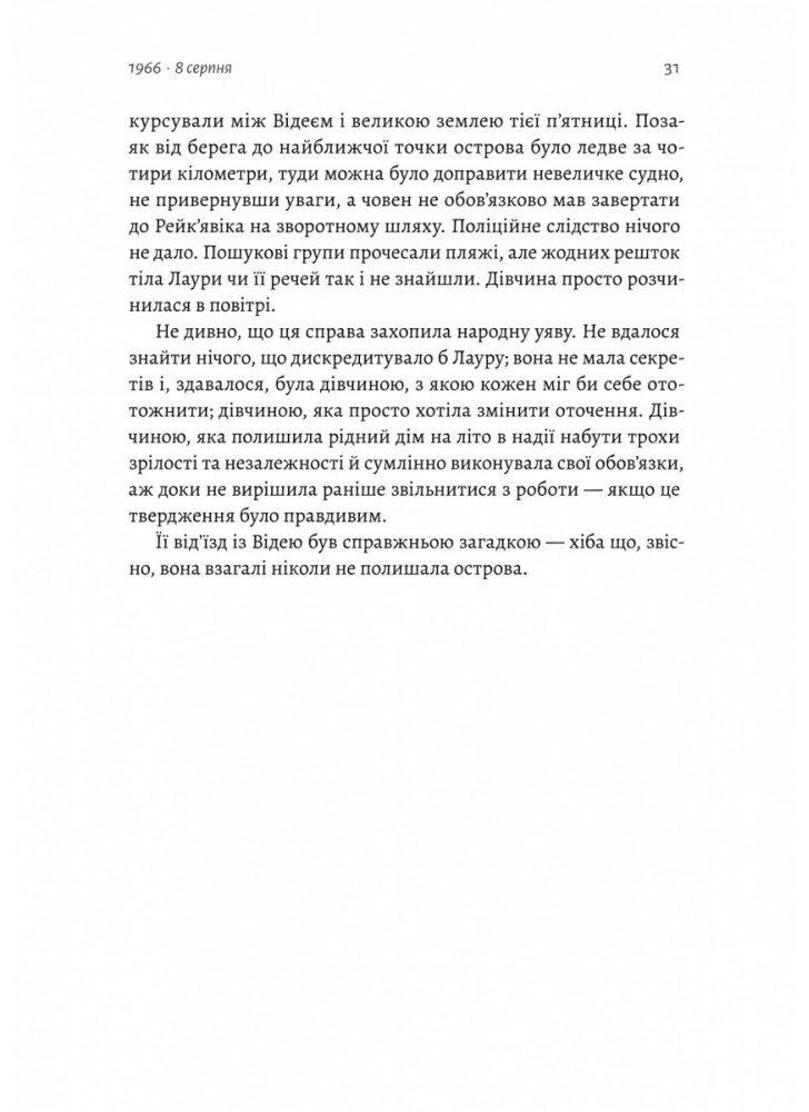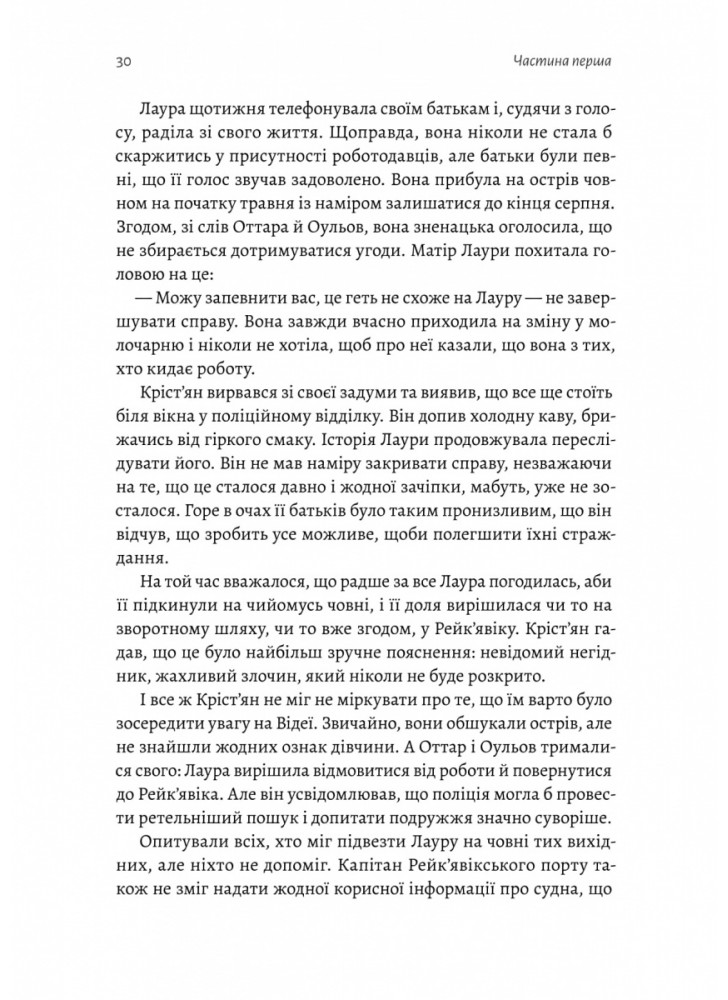 Ісландія, 1956 рік. П’ятнадцятирічна Лаура вирішує провести літо, працюючи в однієї пари на маленькому острові Відей, що неподалік від узбережжя Рейк'явіка. На початку серпня дівчинка безслідно зникає. Минає час, і ця таємниця стає найганебнішою нерозкритою справою в Ісландії. Що сталося з дівчиною? Чи є шанс знайти її живою? Чи, можливо, вона просто покинула острів?