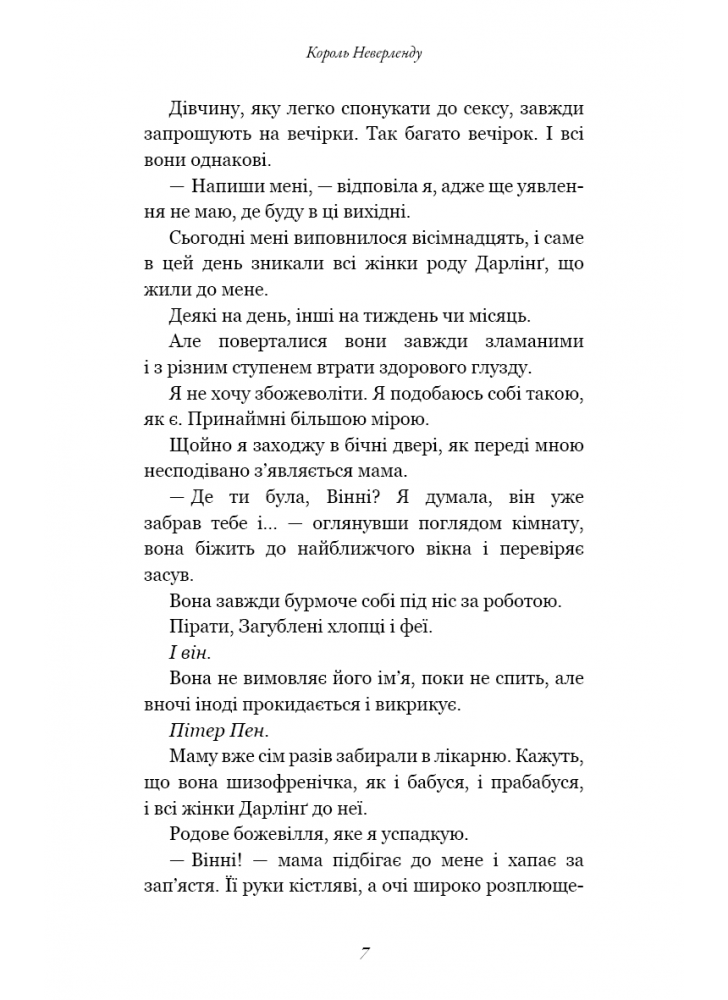 Протягом двох століть усі жінки роду Дарлінґ зникали у свій 18-й день народження. Іноді вони зникали лише на день, іноді на тиждень чи місяць. Але вони завжди поверталися зломленими і навіть божевільними. На що готовий піти Пітер Пен, аби отримати бажане? Чи готова Вінні Дарлінґ допомогти Загубленим хлопцям врятувати острів?