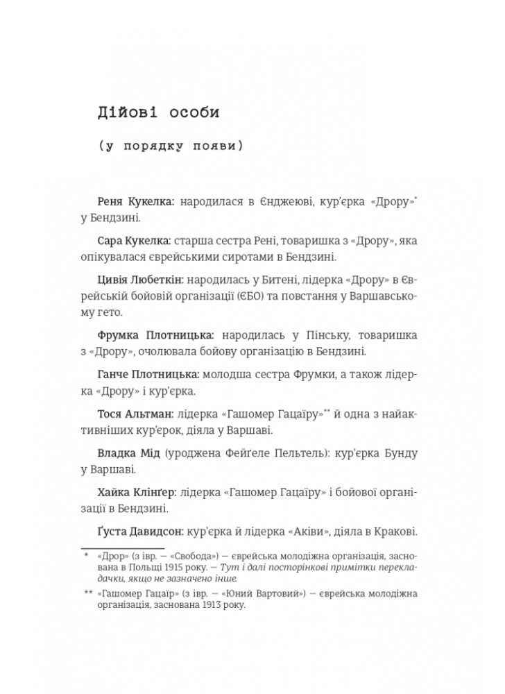Документальний роман розповідає про жінок, які допомогли перетворити єврейські молодіжні групи у Польщі на осередки опору для боротьби з нацистами. Деякі з дівчат були ще підлітками, коли стали свідками жорстокого вбивства своїх сімей і сусідів, ґвалтівного знищення їхніх громад.