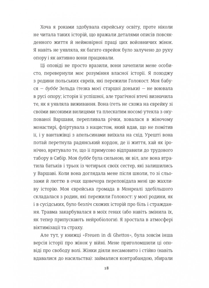Авторка дослідила численні документи та мемуари, зібрала розповіді безпосередніх учасниць спротиву, аби показати широту й масштаб жіночої відваги та висвітлити надзвичайні досягнення єврейських жінок, чиї подвигидосі лишалися невідомі.