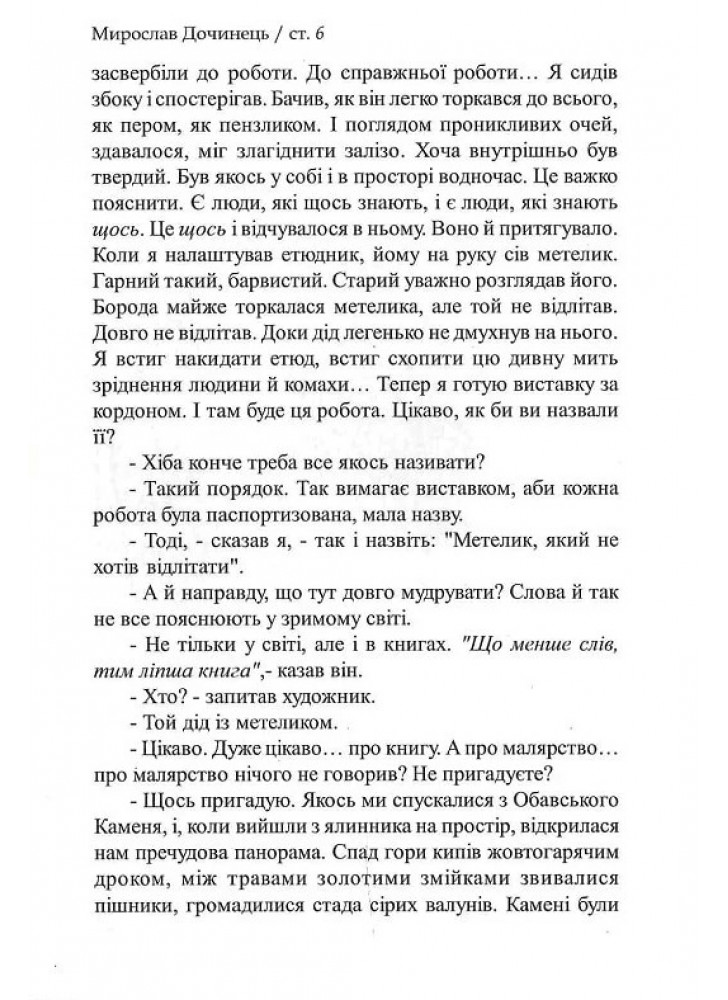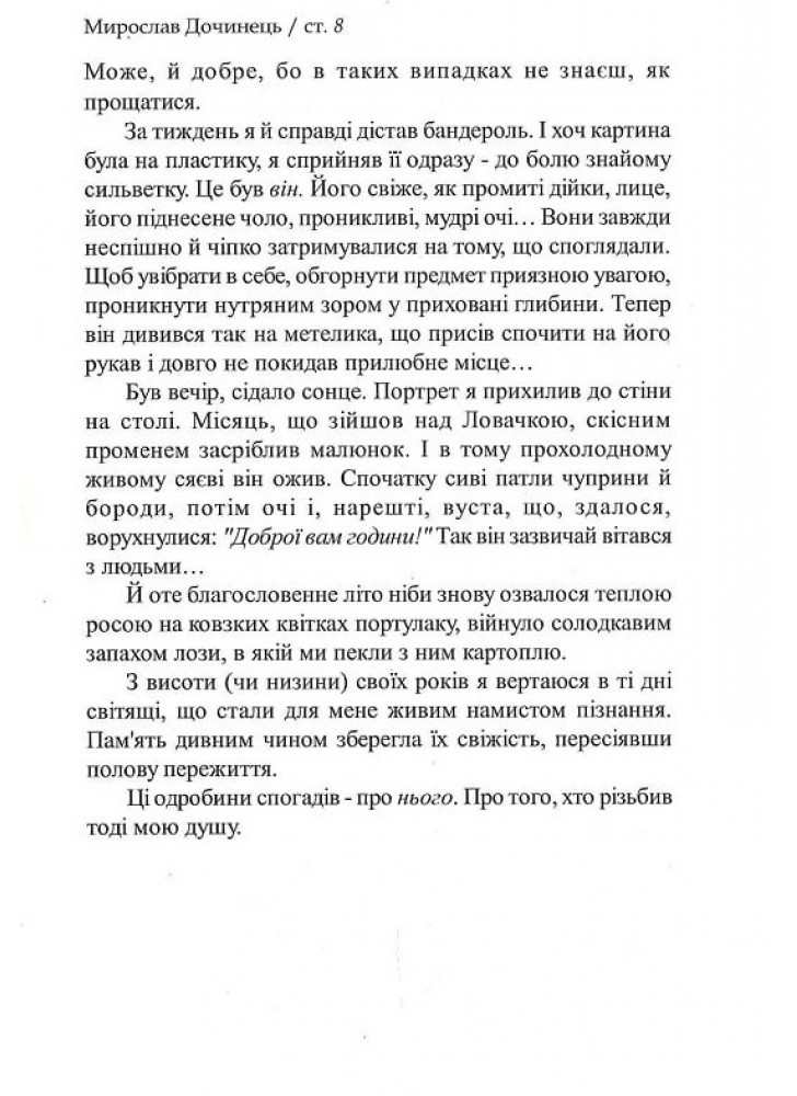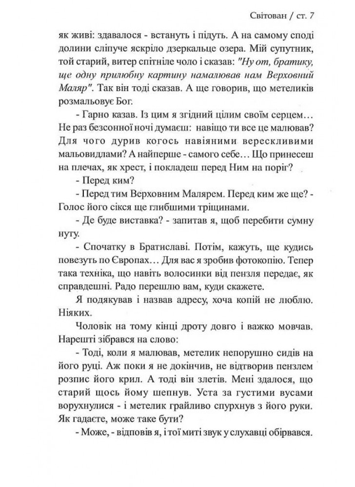 Ця книга - повна захоплення і любові розповідь про мандри в горах із мудрецем Андрієм Вороном, якого вже встигли назвати українським Сократом. Він жив, як дихав, власним життям явив спроможність бути-вільним у світі, який ловить і поневолює людину. Для сучасної, заблуканої серед штучних міражів людини світло його досвіду постає опорою для порятунку. Між рядками щирого письма живе горний дух, нурт живої природи, правда первісної оселі.