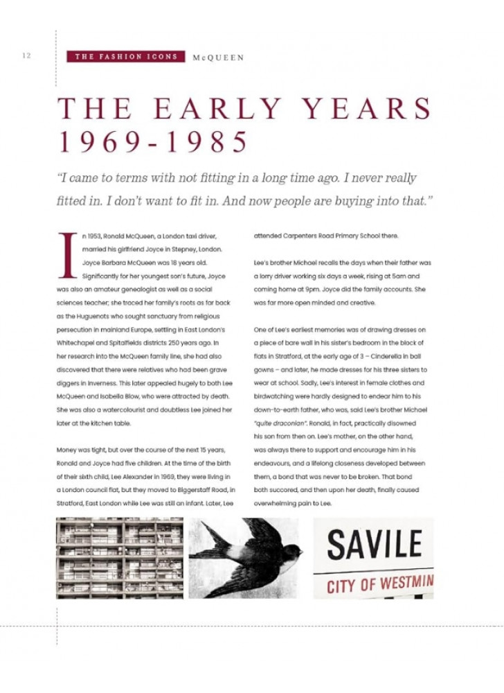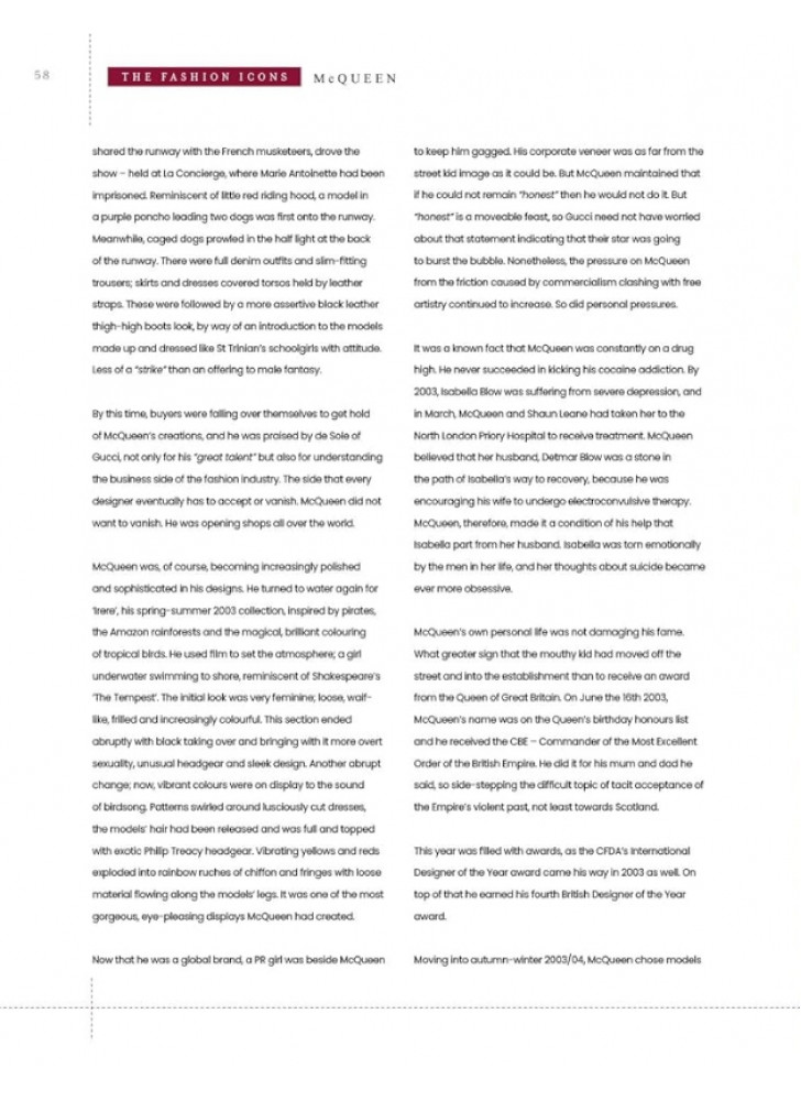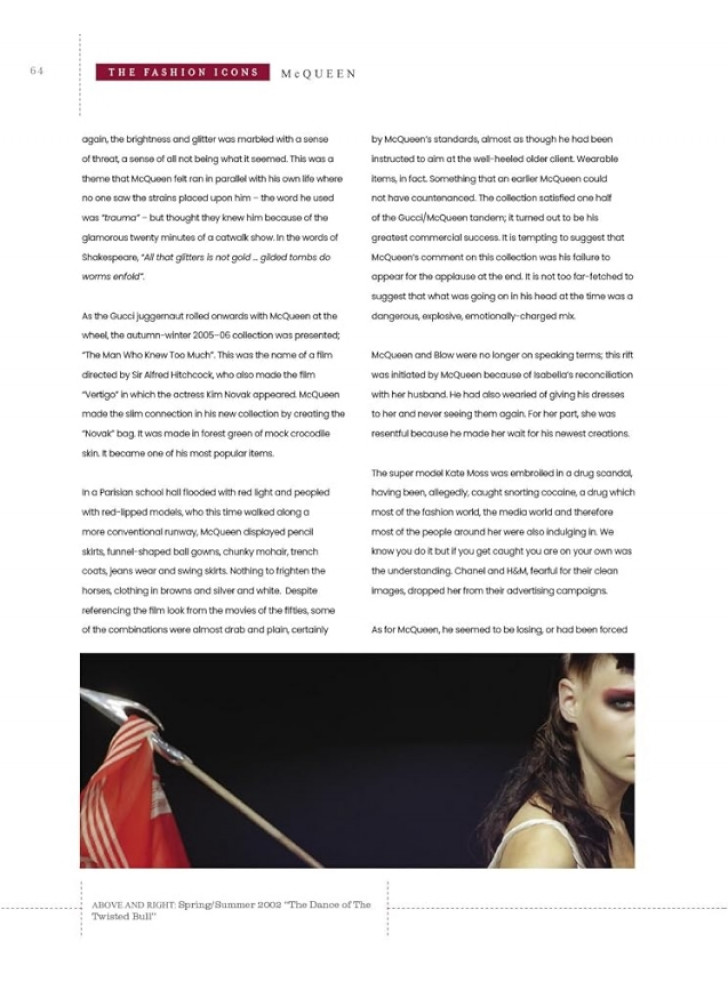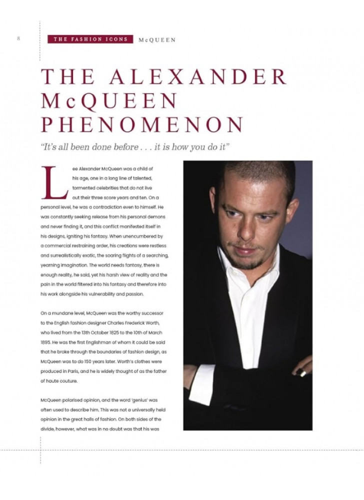 Книга закарбує в пам'яті читача незабутні образи своїх вибухових дизайнів, висвітлить його талант і заглибиться в розум людини, яка була найнепередбачуванішим, найстрашнішим та найвидовищнішим модельєром Британії.