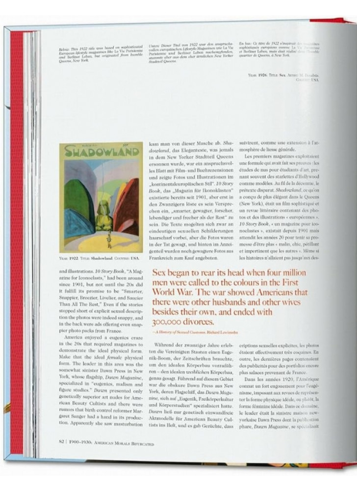 Усе це могло б залишитися в Парижі, якби не Перша світова війна, коли німецькі та американські війська розвозили журнали додому. Американець Вілфорд Фосетт заснував журнал «Capt. Billy’s Whiz Bang» (названий на честь бомби Першої світової війни) у 1919 році, що допомогло розпочати першу сексуальну революцію 1920-х років, що призвело до появи журналу SEX від піонерки контролю народжуваності Маргарет Сенгер. Декадентський Веймарський Берлін випускав журнали про кабаре, фетиш та вільне кохання, протистоячи нудистським виданням, що пропагували фашистську політику, кульмінацією яких стало спалення книг у Берліні 1933 року.