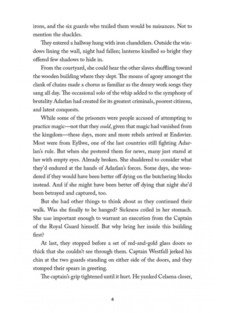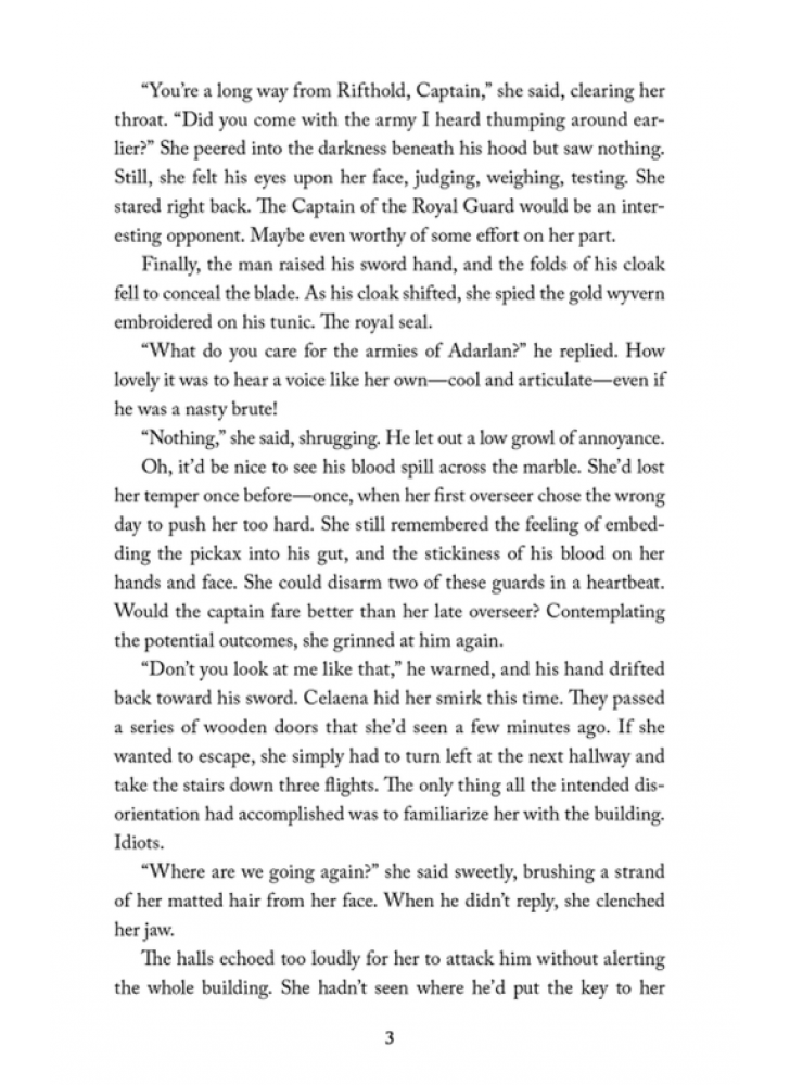 Якщо вона переможе двадцять трьох убивць, злодіїв та воїнів у смертельному змаганні, її звільнять з в'язниці, щоб вона стала Чемпіонкою Короля. Але щось гниле живе в замку – і воно там, щоб убивати. Коли її суперниці починають таємниче гинути один за одним, боротьба Селаени за свободу перетворюється на боротьбу за виживання – і відчайдушне прагнення викорінити зло, перш ніж воно зруйнує її світ і людей, яких вона полюбила.
