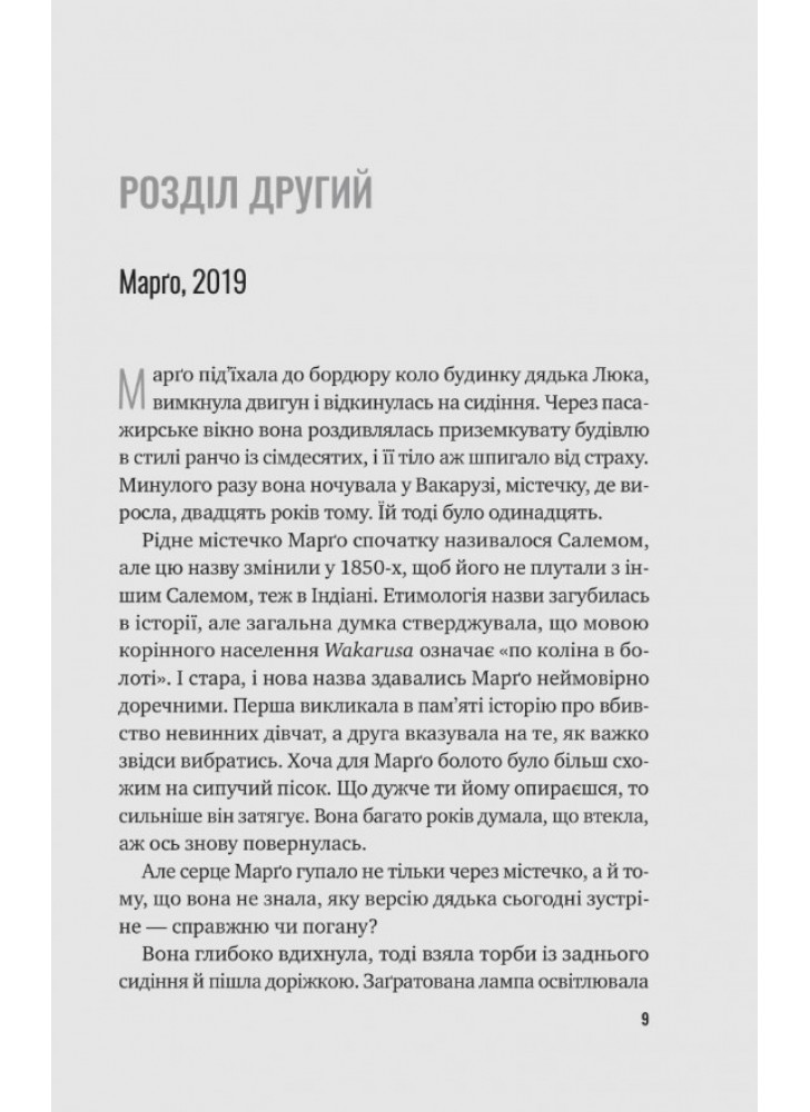 Це сталося знову... Марґо все життя вважала, що могла тоді опинитися на місці Дженьєрі, тож вирішує розшукати Наталі та поставити крапку в цій історії. Та що більше подробиць з’ясовує журналістка, що більше незручних питань озвучує, то сильніший опір їй чинять містяни. Невже вони не хочуть, щоб злочини були викриті? І чи справді викрадач Наталі й убивця Дженьєрі — одна й та ж людина?