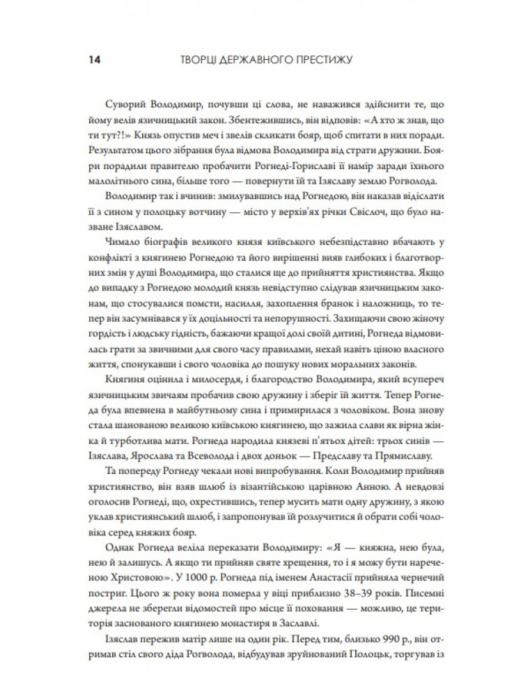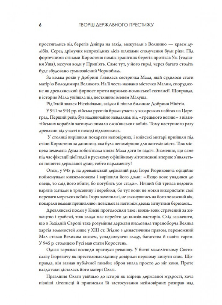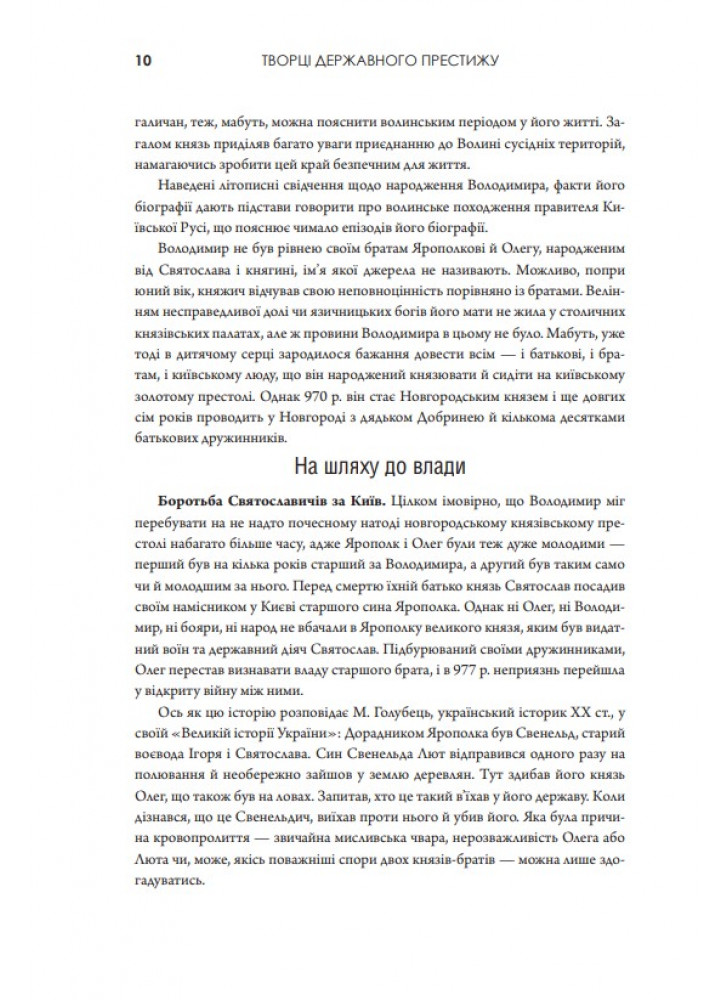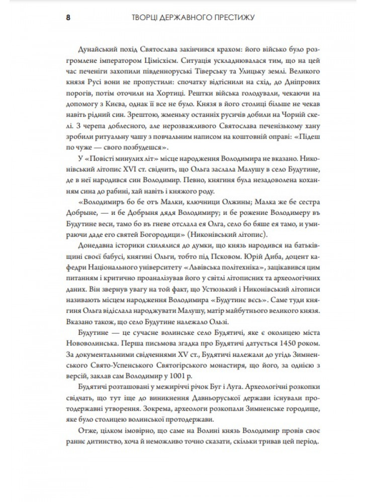Перечитуючи деякі сторінки історії України, часом може здаватися, що багато подій перегукується із сьогоденням. Та це й не дивно — історія, як відомо, рухається по спі-ралі. І якщо ми, українці, вважаємо себе мудрим народом, то маємо враховувати досвід своїх героїчних предків, учитися на їхніх помилках і намагатися запобігати новим. Книга «Творці державного престижу» присвячена величним історичним постатям, з якими насамперед асоціюється становлення державності та незалежності України.