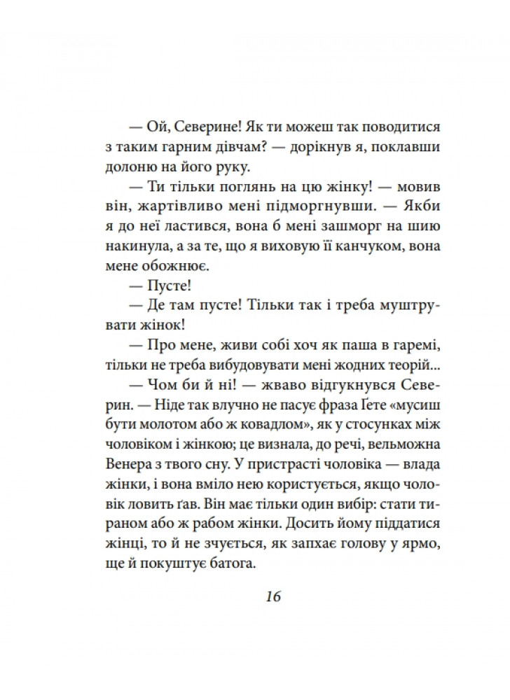 «Венера в хутрі» (1869) — роман австрійського письменника Леопольда фон Захера-Мазоха. В центрі оповіді — кохання шляхтича Северина до холодної красуні Ванди. Добиваючись взаємності, Северин готовий служити коханій, як раб. Жінка спочатку сприймає такі стосунки за гру, але потім захоплюється своєю владою над коханцем.