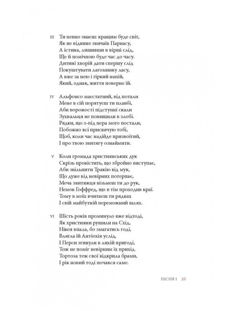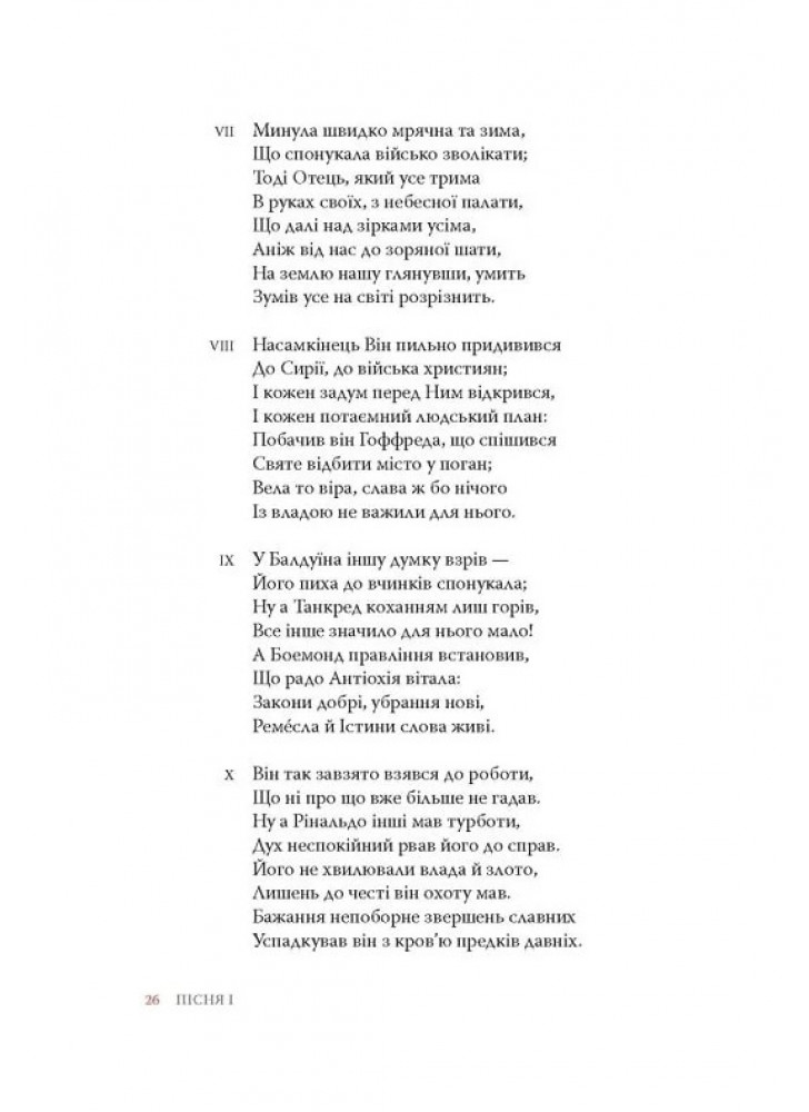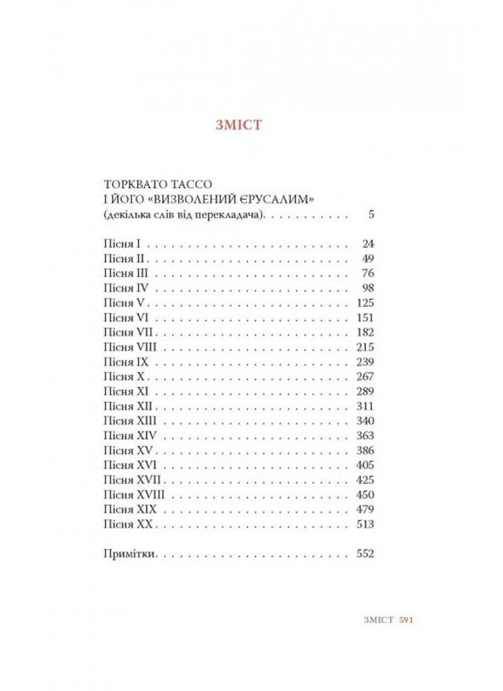 Увазі читача пропонується перший повний український переклад великої епічної поеми славетного італійського поета Торквато Тассо «Визволений Єрусалим» (вперше надрукована 1581 року). Поема, у якій розповідь про події та героїв Першого хрестового походу та відвоювання Єрусалима в «невірних» чергується із захопливими фантастичними та пригодницькими історіями, була улюбленим чтивом європейців упродовж понад двохсот років.