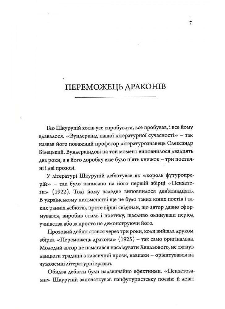 До авторської прозової антології Гео Шкурупія увійшло одинадцять текстів, написаних у 1920-ті й на початку 1930-х років. Серед них читачі знайдуть і повість про жінок на фронті Першої світової війни (гідний зразок жанру воєнної прози), і короткі оповідання, де на тлі виразного побуту епохи змальовано характерні для неї людські історії, і цикл "Монгольські оповідання", написаний після подорожі автора в Монголію, і повість про Тараса Шевченка, якого олюднювати й вичищати від бронзи почали саме футуристи під гаслом "Реабілітація Шевченка". Частину текстів було опубліковано в тогочасній періодиці, й сьогодні вони вперше повертаються до читача.