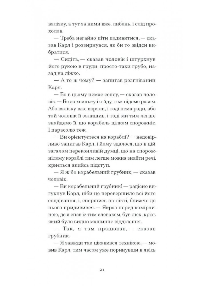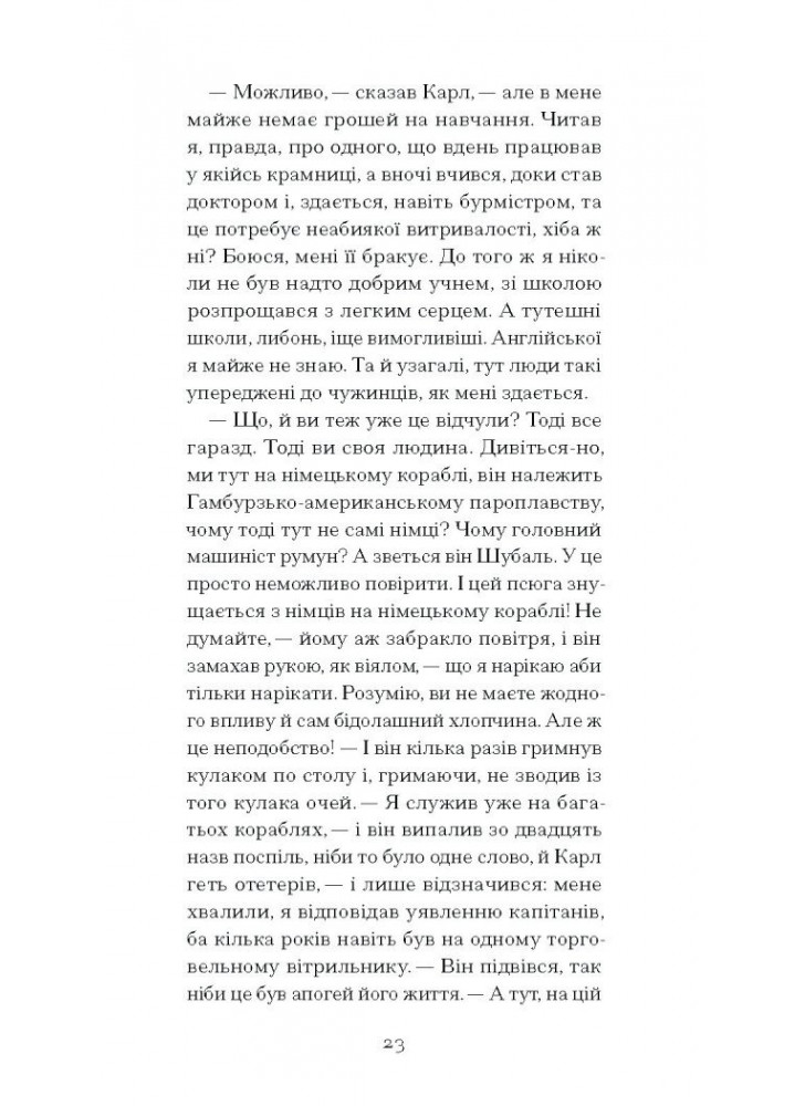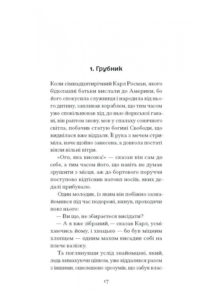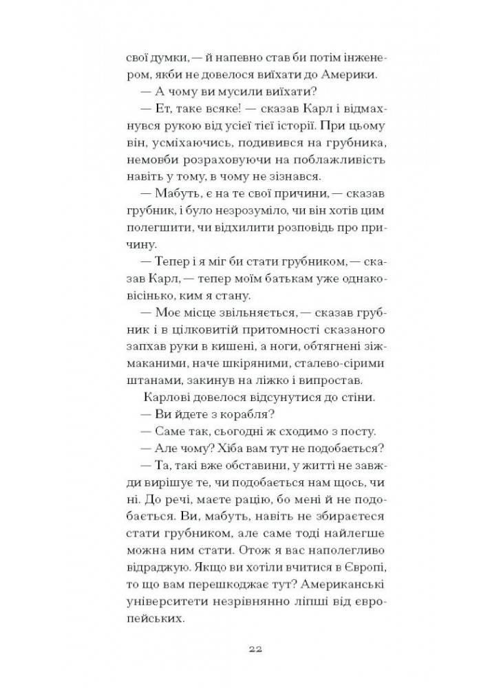 Цей прикметно модерністський «роман виховання» — розповідь про юнака-емігранта, своєрідна історія змужніння, сподівано для Кафки радше сувора й не вельми милосердна, ніж погідна й привітна, повна непередбачуваних поворотів долі, а однак, розказана спокійно й легко, подекуди навіть грайливо, без фаталізму і абсурдности, притаманних пізнішим авторовим творам.