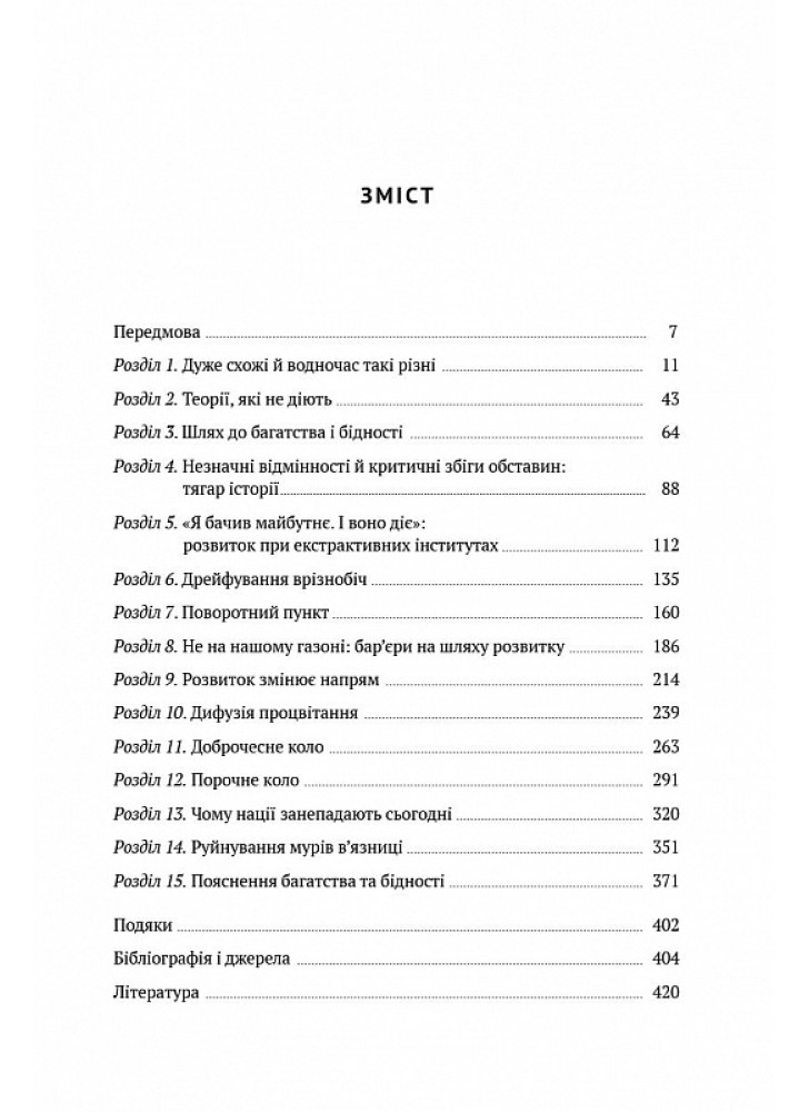 Ґрунтуючись на п’ятнадцятирічних дослідженнях у галузях історії, політології та економіки, автори легко і доступно пояснюють, чому економічний успіх держав не залежить від культури, клімату чи географічного положення.