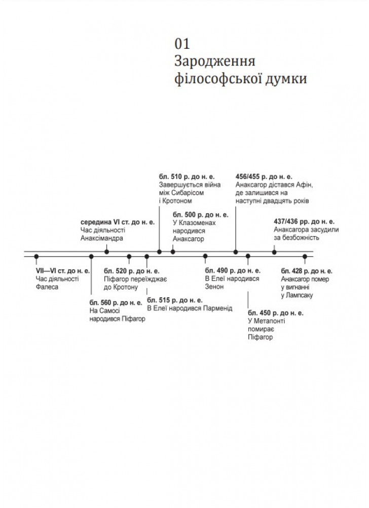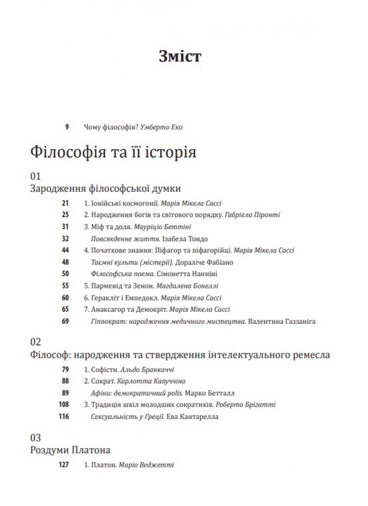 Історія філософії розпочинається з греків. Саме їхня думка утворила простір мислення західного світу, й лише зрозумівши, як розмірковували греки, ми зможемо збагнути, в який спосіб розвивалося мислення протягом наступних майже трьох тисячоліть. Наше видання знайомить читача з розвитком філософії від Античності до Середньовіччя, висвітлюючи тісний зв’язок філософської думки Сократа, Платона, Арістотеля з формуванням поглядів таких представників середньовічної філософії, як Альберт Великий, Тома Аквінський, Роджер Бекон та інші.