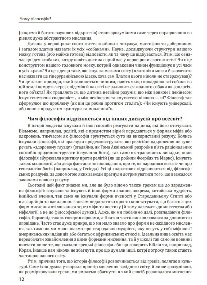 Людина завжди хотіла знати: чи є в цьому світі справедливість? Чому потрібно страждати? Чи існує життя після смерті? Що таке душа і де вона перебуває? Що таке істина? Можна продовжувати цей перелік безкінечно: усе це філософські питання, і не потрібно бути професором філософії, щоб їх ставити. Вони цікавлять кожного з нас, бо філософія передусім допомагає нам призвичаїтися до абстрактного мислення.