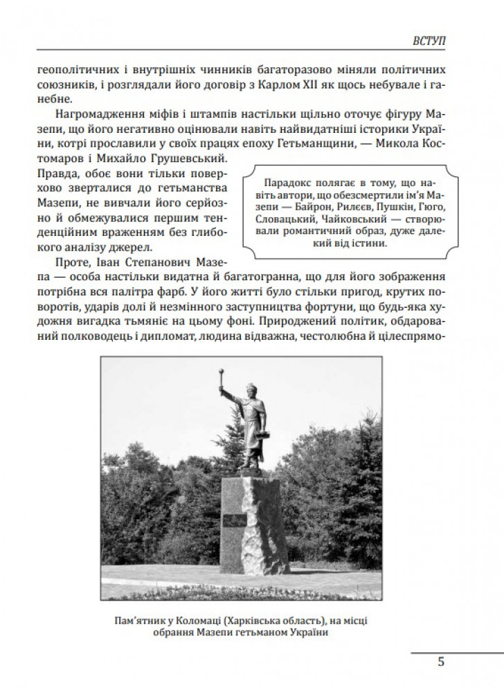 Напевно, немає в українській історії особистості більш суперечливою, яка періодично викликає непримиренні дискусійні баталії в середовищі обивателів і знавців.Черговим приводом для такого сплеску стала свого часу книга Т. Таїрової-Яковлєвої «Іван Мазепа». Це документально обгрунтоване дослідження назвали «першою правдивою книгою про гетьмана Івана Мазепу».