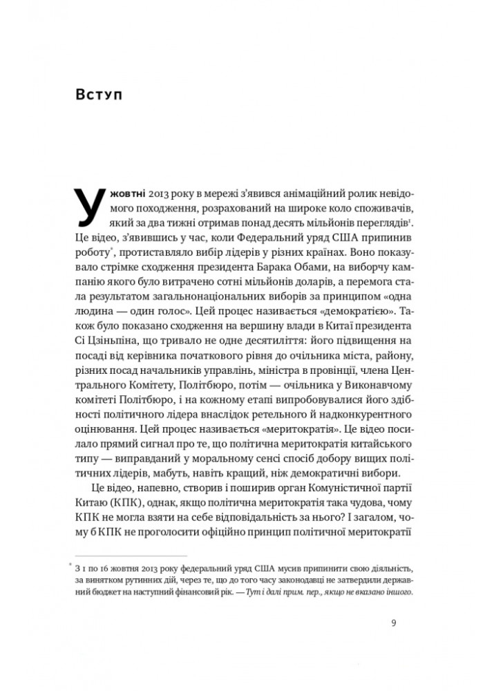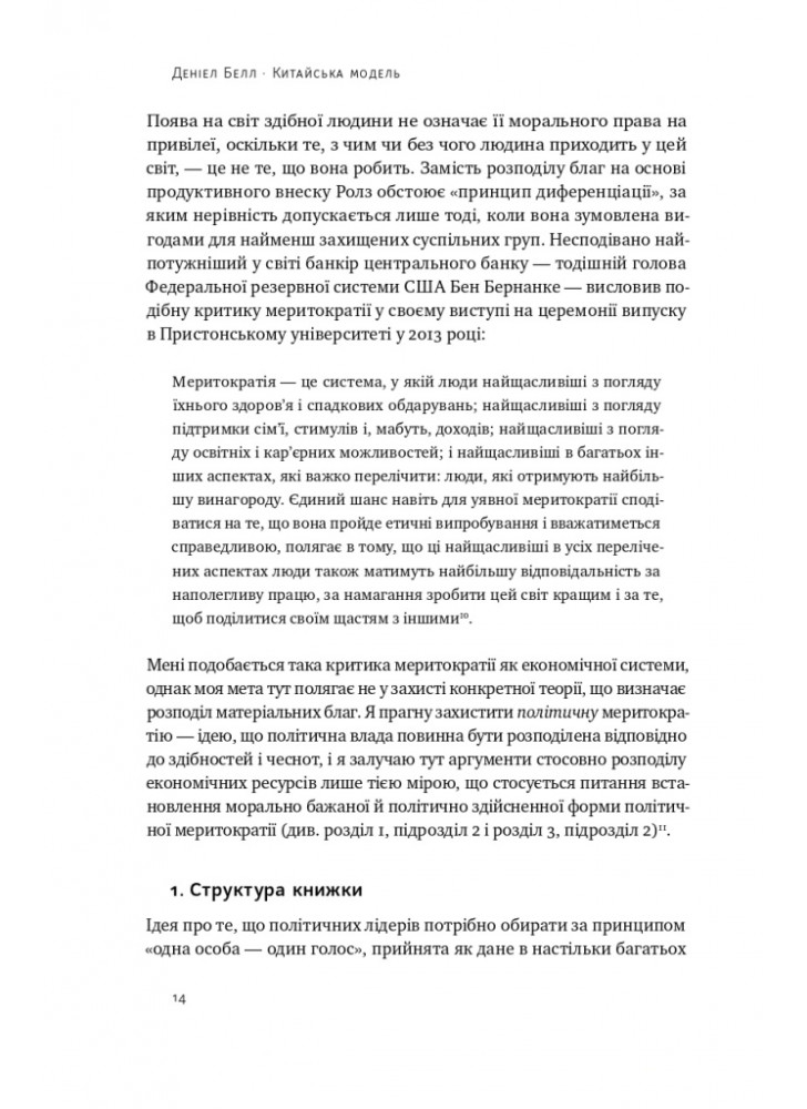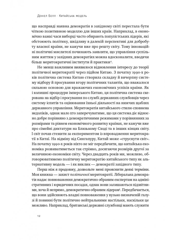На Заході політичні системи звикли ділити на «хороші» демократії і «погані» авторитарні режими. На думку Деніела Белла, нинішній політичний режим Китаю стоїть десь посередині між двома крайнощами. Він вважає, що так званий тамтешній комунізм останніми роками трансформувався в політичну меритократію. Чим характеризується «політична меритократія»? Яких вад цього режиму слід уникати? Які його беззаперечні переваги не можна ігнорувати і як їх успішно поєднати з демократичними цінностями?
