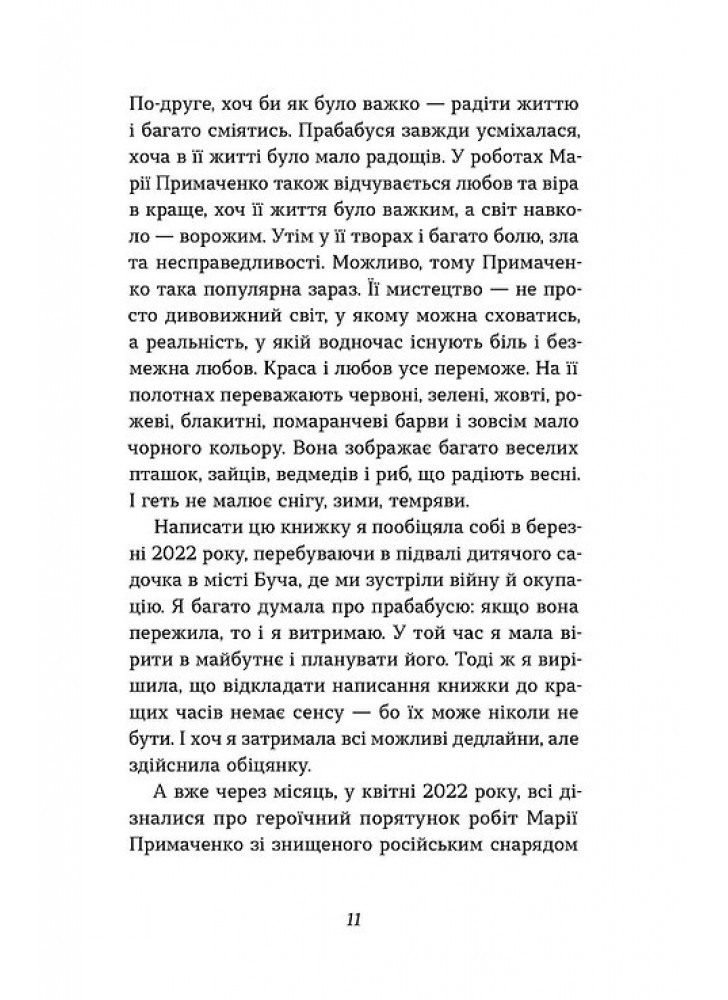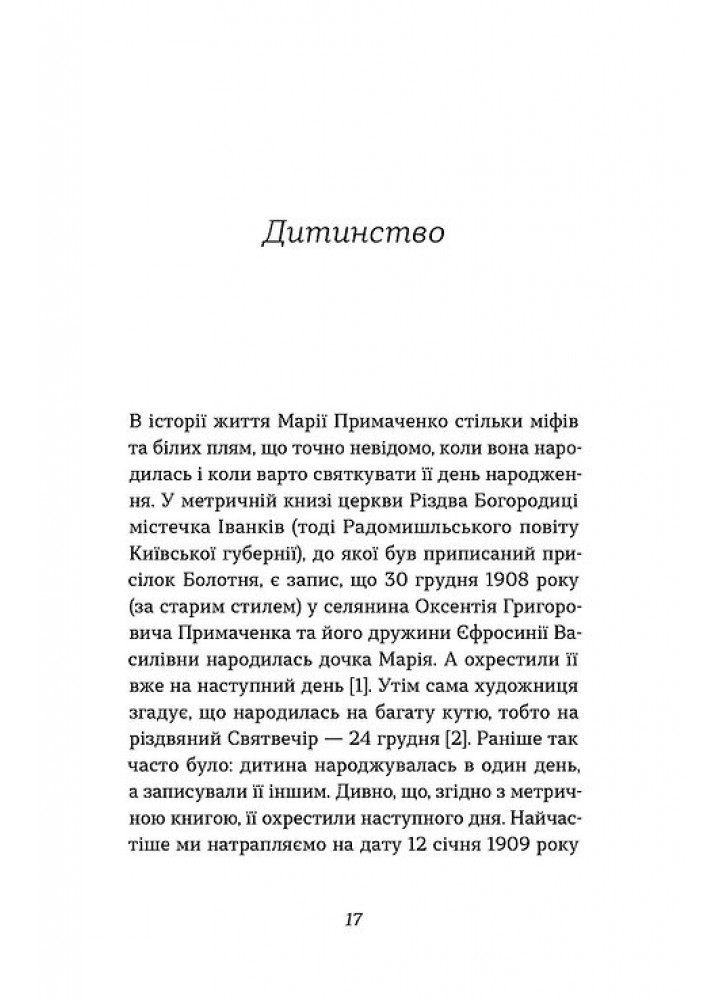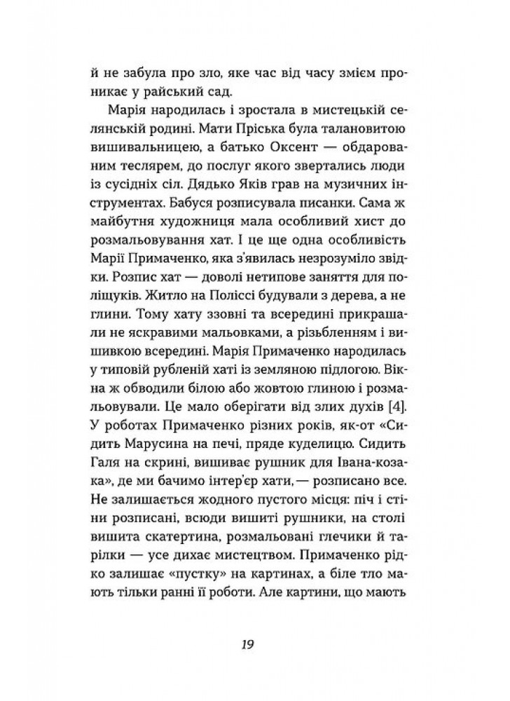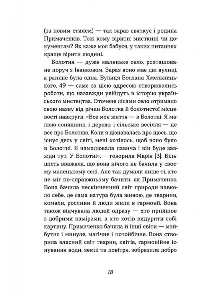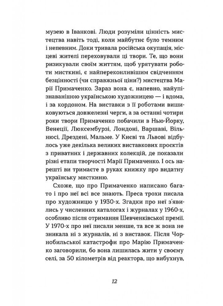 Такий шлях художниці змальовує у своїй книжці історикиня мистецтва Оксана Семенік. Занурившись в архіви, авторка оповідає справжню історію Марії Примаченко та розвінчує міфи, якими оповитий її образ.