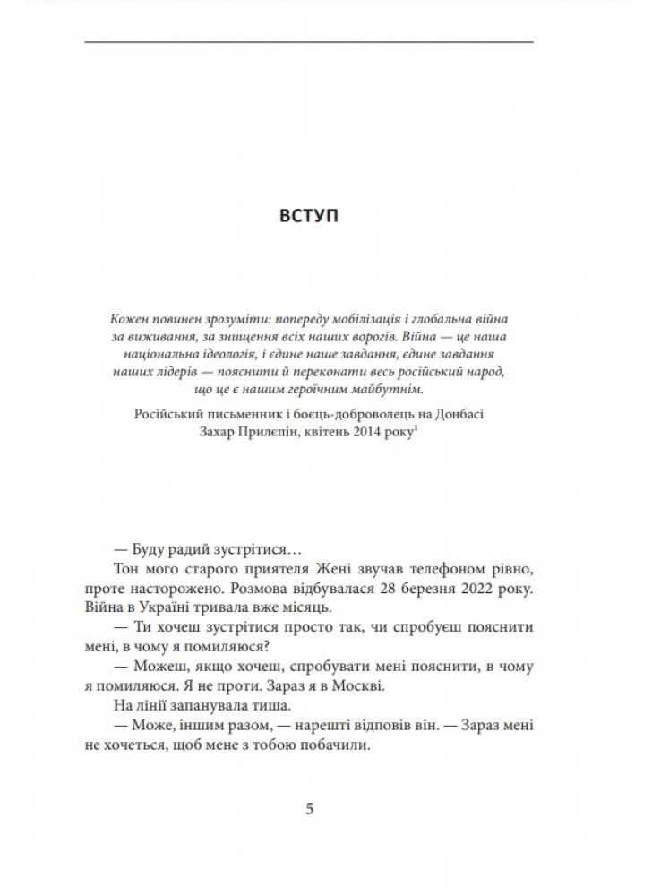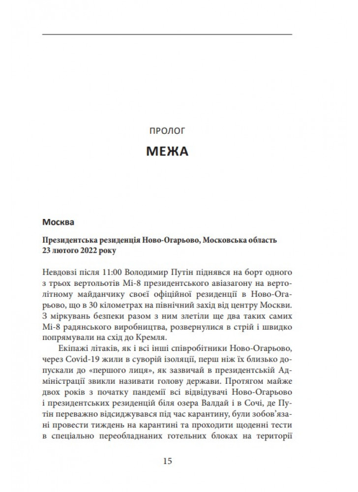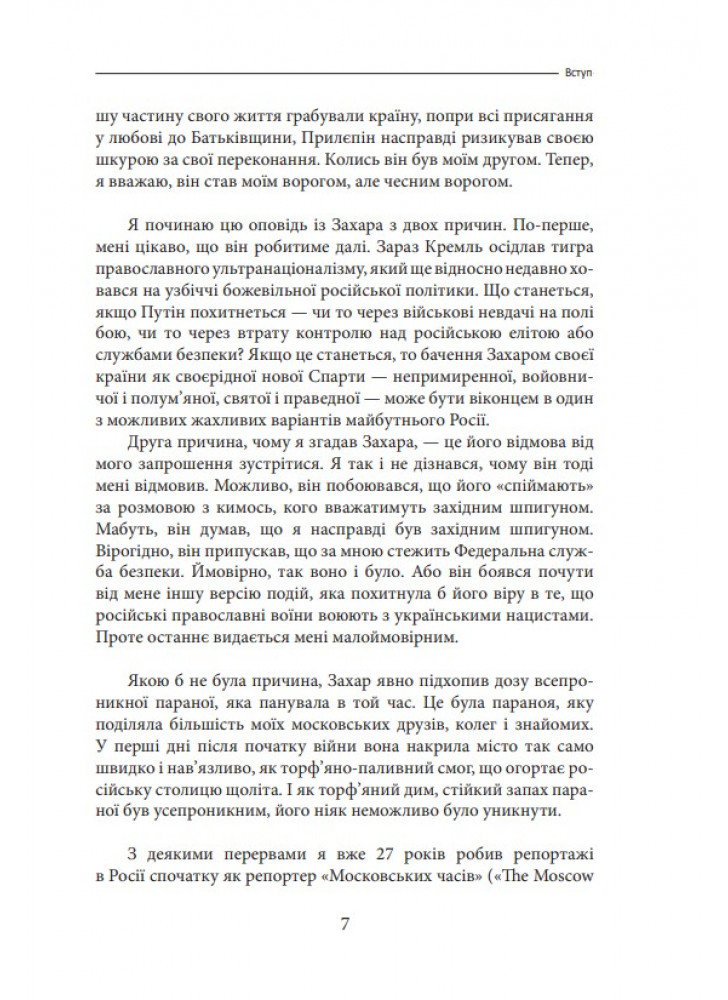 Метьюз намагається пояснити читачам історію конфлікту українців і р*сіян протягом століть. Особливу увагу автор приділяє подіям останніх тридцяти років після розпаду союзу, намагається дати об’єктивну оцінку процесам, які відбувалися в незалежній Україні. Овен Метьюз добре орієнтується в персоналіях р*сійської політики і детально, крок за кроком розповідає про підготовку економіки, військових потужностей і особливо свідомості громадян, що відбувалась в країні-агресорі останні десятиліття, до нової війни.