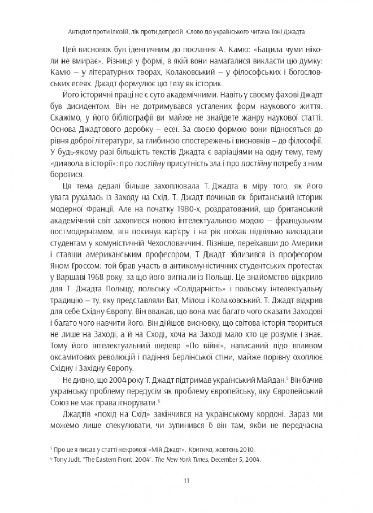 Нарешті, це роздуми про обмеження (і здатність до відродження) політичних ідей, а також про моральні поразки (і обов’язки) інтелектуалів у політиці. Як влучно зазначає у передмові до «Роздумів» український історик Ярослав Грицак, «ця книжка нагадує, що зло вічне. А тому вічною є потреба з ним боротися. Особливо на одній із вирішальних для всього світу територій: в Україні та Східній Європі».