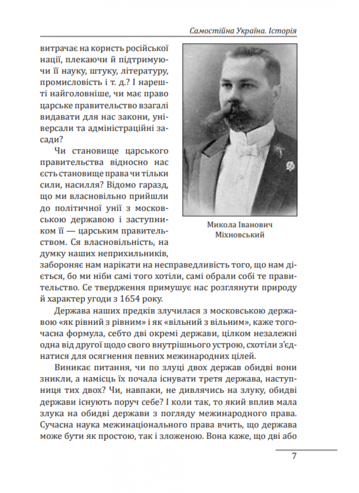 Микола Іванович Міхновський (1873–1924) — український політичний і громадський діяч кінця XIX — початку XX ст. Його брошура «Самостійна Україна», написана 1900 року, якийсь час виконувала роль політичної програми Революційної української партії. Вперше праця була видана у Львові 1900-го.
