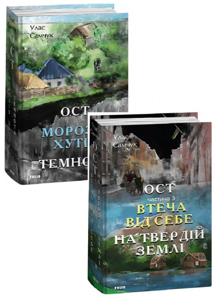 Трилогія «ОСТ» Уласа Самчука (1905—1987) — це романи «Морозів хутір», «Темнота», «Втеча від себе». Події роману «Морозів хутір» відбуваються від Різдва 1918 року до Великодня 1919-го, в складний і тривожний період української історії. Герої книги шукають відповіді на актуальні питання свого часу і питання «вічні»: про революцію, українську державність, мову, культуру, мистецтво. Хутір тут є символом усталеного, традиційного світу. Руйнація українського хутора означала знищення української душі. Події роману «Темнота» охоплюють період від громадянської війни до початку другої світової війни. Темнота — це все страшне, трагічне, темне, що принесла радянська влада — війну, голодомор, масові політичні процеси, ГУЛАГ. Івана Мороза заарештовують як «ворога народу», він проживає роки неволі, катувань, принижень. І, хоча не зломлений фізично і морально, вимушений співпрацювати з радянською владою. Щоб вижити в нових умовах, він виявляє себе здібним, ініціативним господарником, але залишається заручником тоталітарної держави, яка перемелює всіх і все.