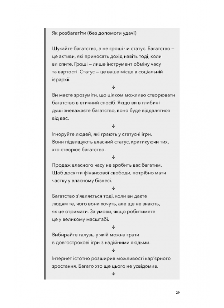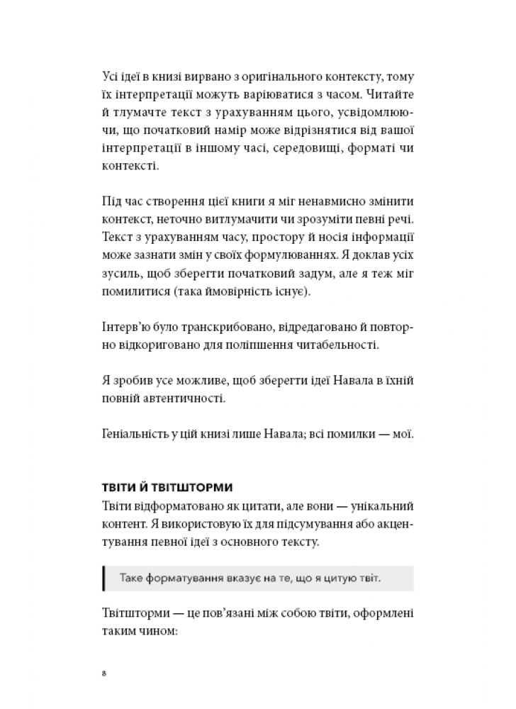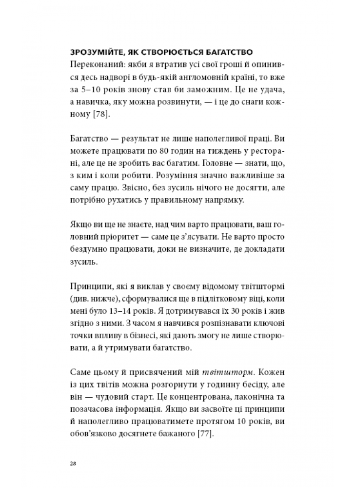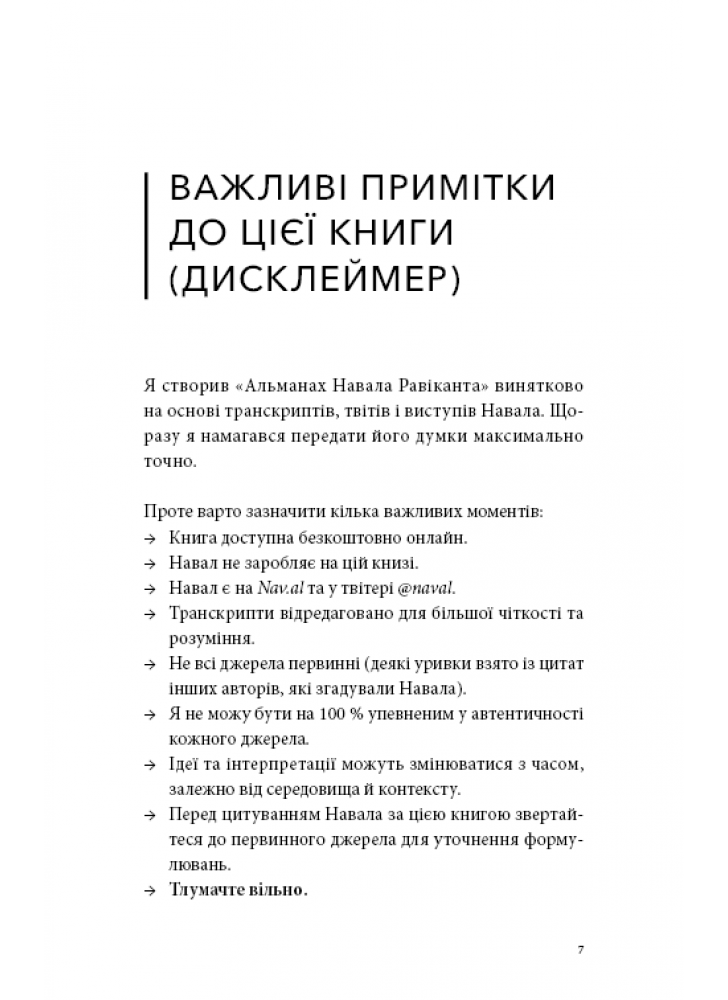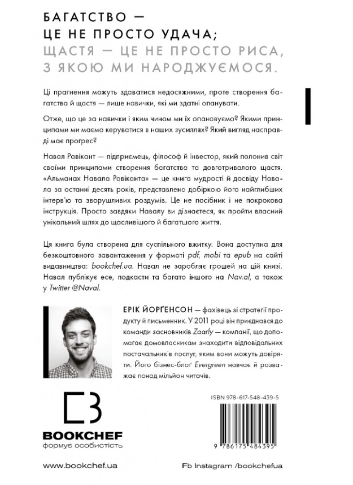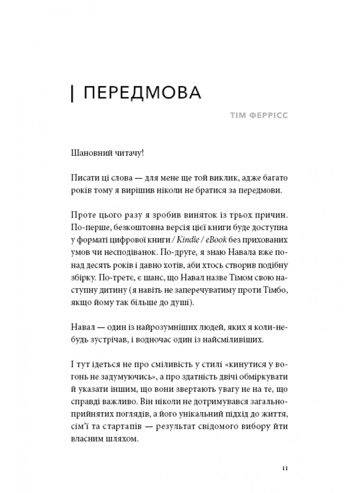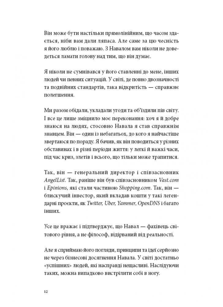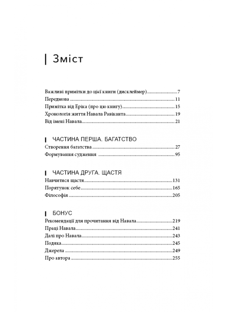 Це не підручник і не інструкція для досягнення багатства крок за кроком. Це книга, в якій ви зі слів самого Навала дізнаєтеся, як пройти власний унікальний шлях до щасливішого й багатшого життя.