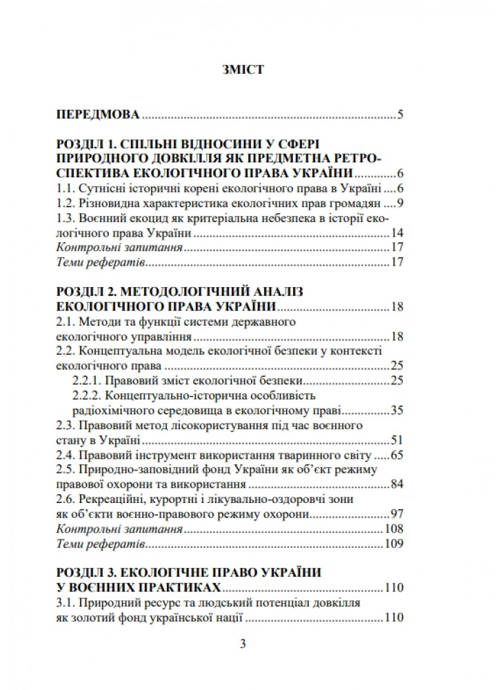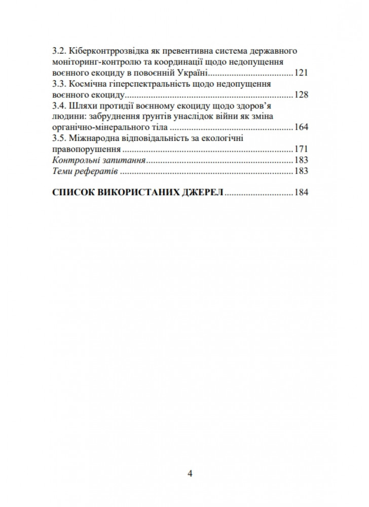 У навчальному посібнику висвітлено предметну ретроспективу екологічного права України. Зосереджено увагу на воєнному екоциді. Визначена концептуально-історична особливість радіохімічного середовища в екологічному праві. Стверджено кіберконтррозвідку як превентивну систему державного моніторингконтролю та координації щодо недопущення воєнного екоциду в повоєнній Україні. Розраховано на студентів, курсантів та викладачів вищих навчальних закладів України, а також співробітників спецслужб.