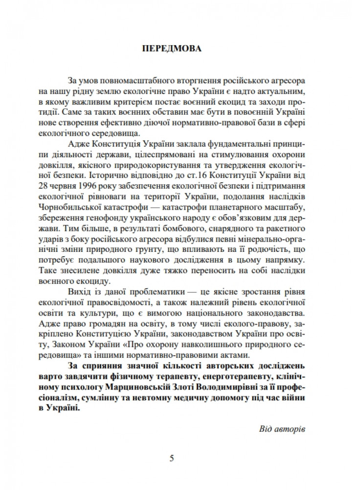 Екологічне право України. Воєнний екоцид та заходи протидії. Навчальний посібник