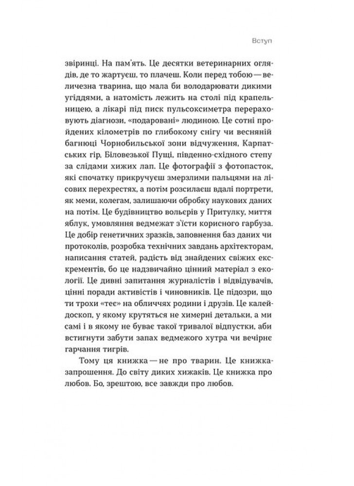 Як каже сама зоологиня, ця книжка не про тварин, вона — про любов до них, про вміння розуміти їх і жити поруч.