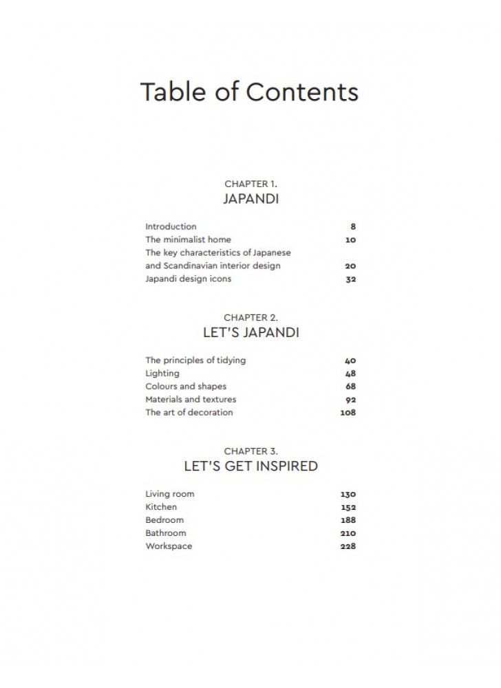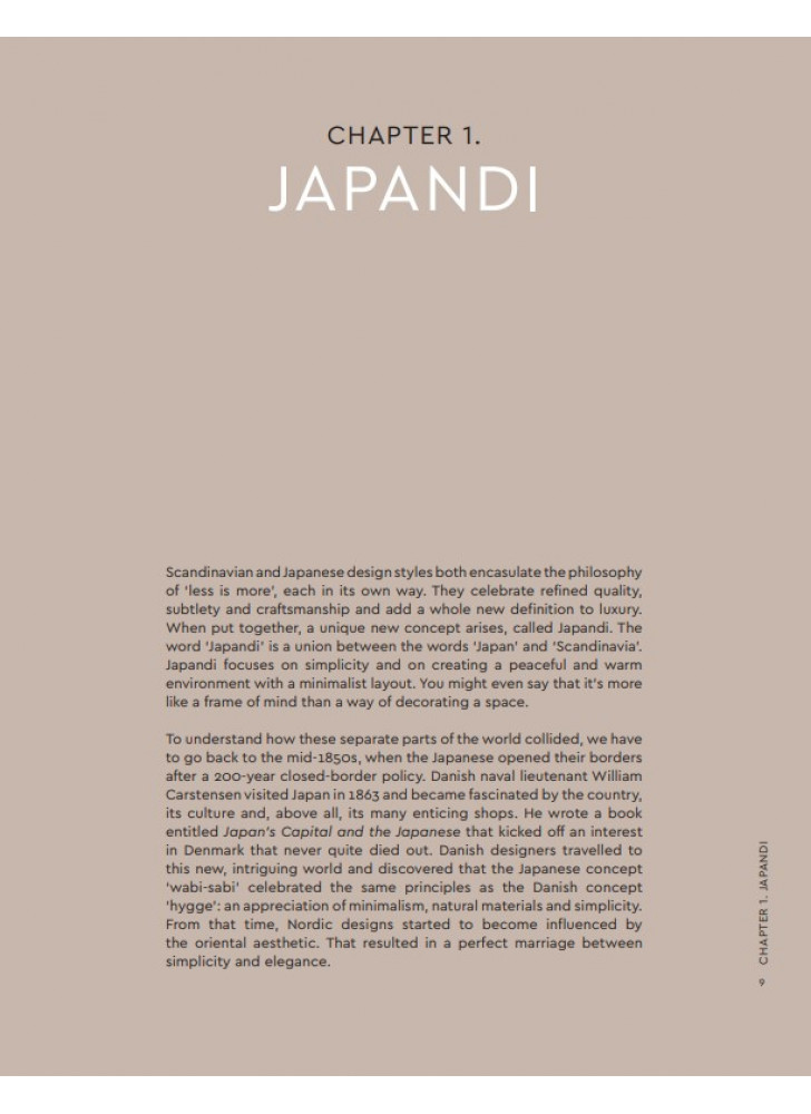 Під впливом стародавньої японської філософії вабі-сабі та скандинавської практики хюґе, Japandi відзначає вишукану якість, тонкість і майстерність. Це виводить мінімалістичний будинок на новий рівень розкоші та елегантності. З більш ніж двома сотнями надихаючих зображень найкрасивіших інтер’єрів і дизайнів Японії ця книга надихає читачів перетворити власні домівки на елегантні, зручні та безладні місця – створити гармонію з навколишнім середовищем, подалі від метушливого зовнішнього світу.