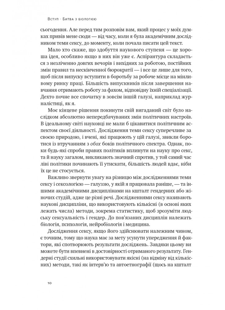 Ця книжка не лише розвінчує поширені міфи, що стосуються питань статі, гендеру та сексуальної поведінки, а й розкриває методи, якими сучасні ЗМІ, навчальні заклади та академічні установи поширюють їх.